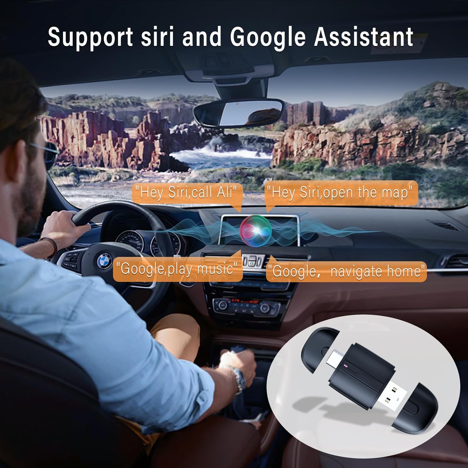 - 【Wireless Carplay Adapter wIth USB-A and Type-C】This wireless carplay adapter comes with two USB-A ports and a Type-C port. Makes moving around efficient without connecting and disconnecting wires, reducing wear on your charging cable