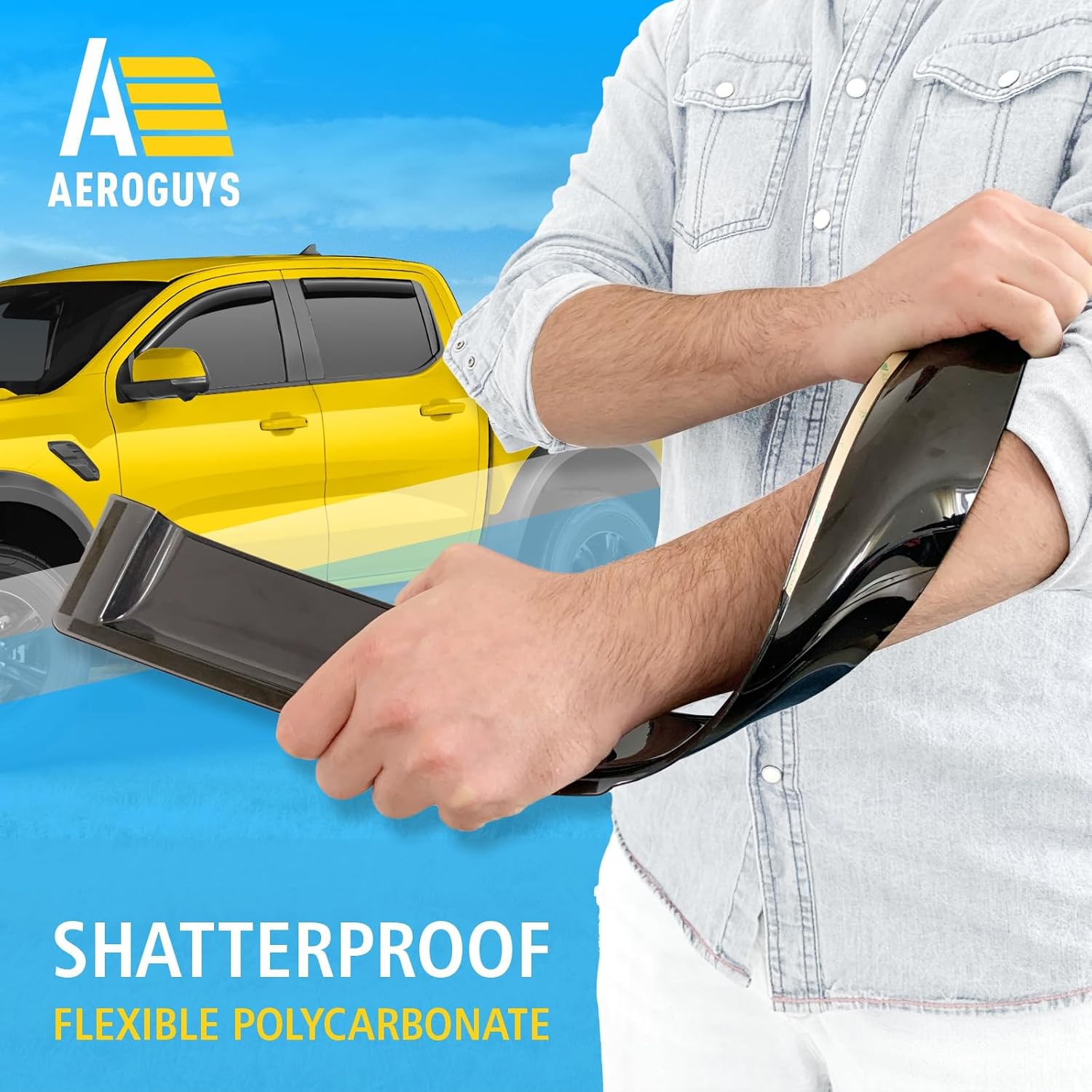 - Incredibly Durable AEROGUYS Auto Window Deflectors – They are made with strong and tough polycarbonate which is clear and scratch-resistant. They also provide UV protection making your ride more comfortable under all weather conditions.