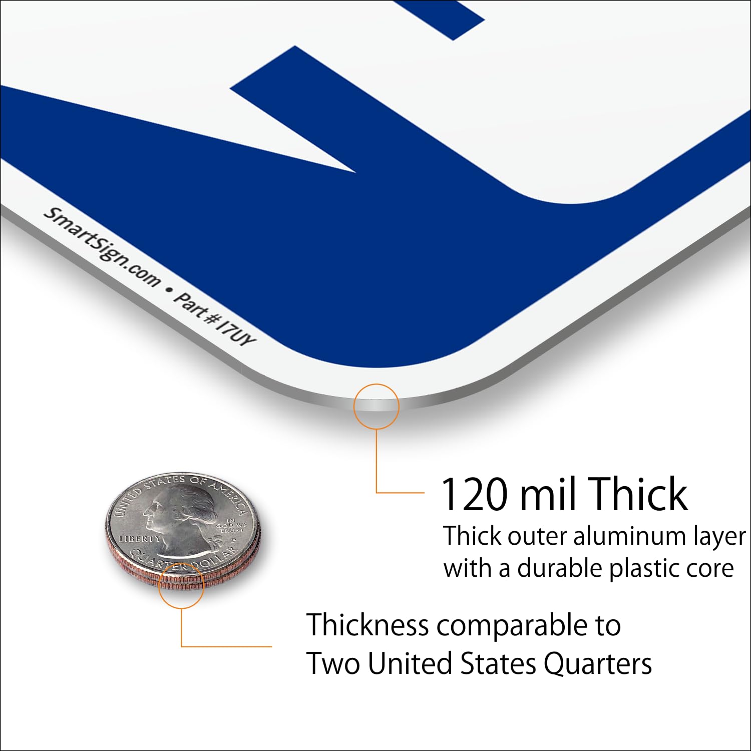 - SMARTSIGN BASICS. Icy Conditions When Blue Signs last up to 7 years outside, these signs have prismatic Engineer Grade film mounted on 120 mil thick ACM (Aluminum Composite Material) which has a thick aluminum outer layer and a durable plastic core.