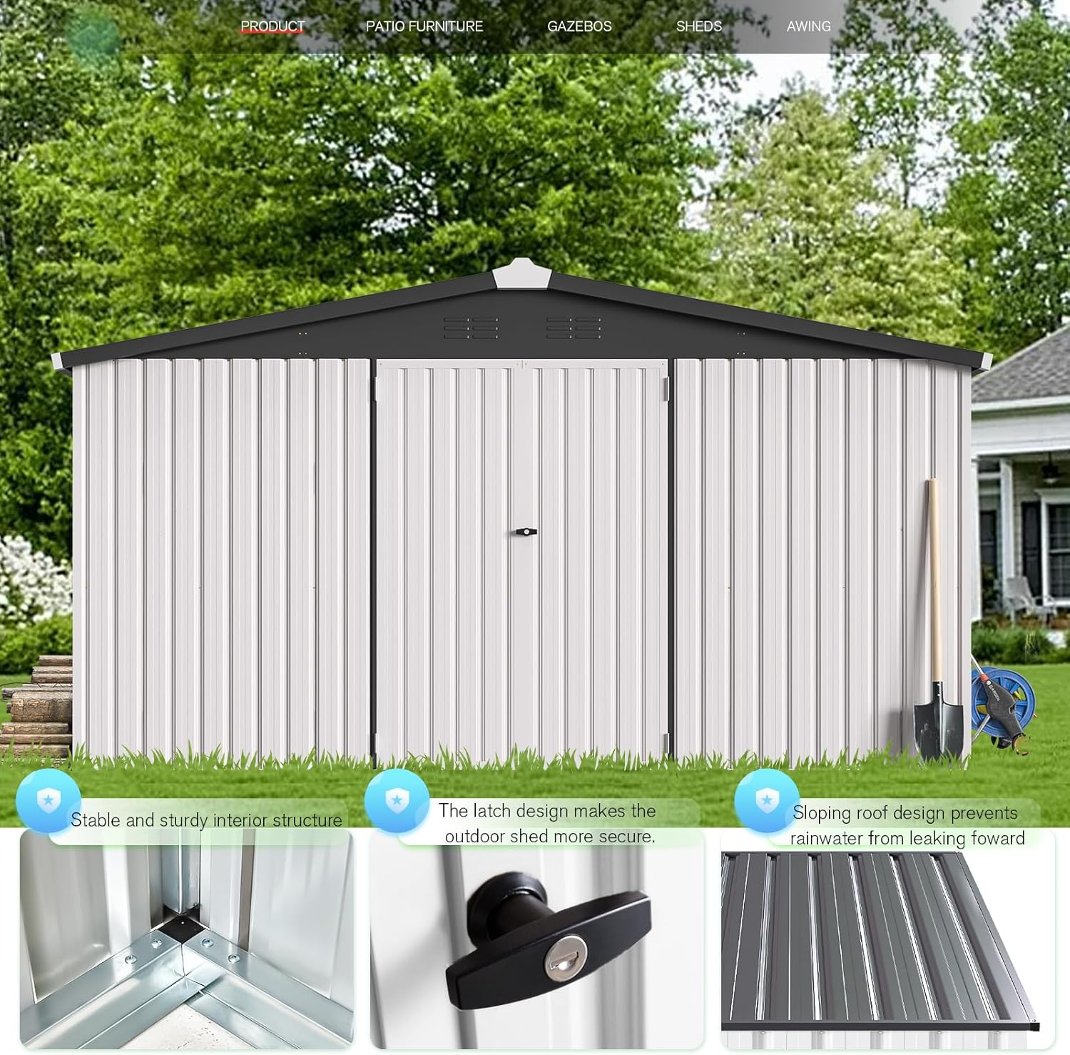 U-MAX 10' x 10' Shed Outdoor Storage Shed Clearance, Large Metal Garden Shed Yard Steel Shed with Design of Lockable Doors, Tool and Utility Storage for Backyard, Garden, Patio, Outside use White