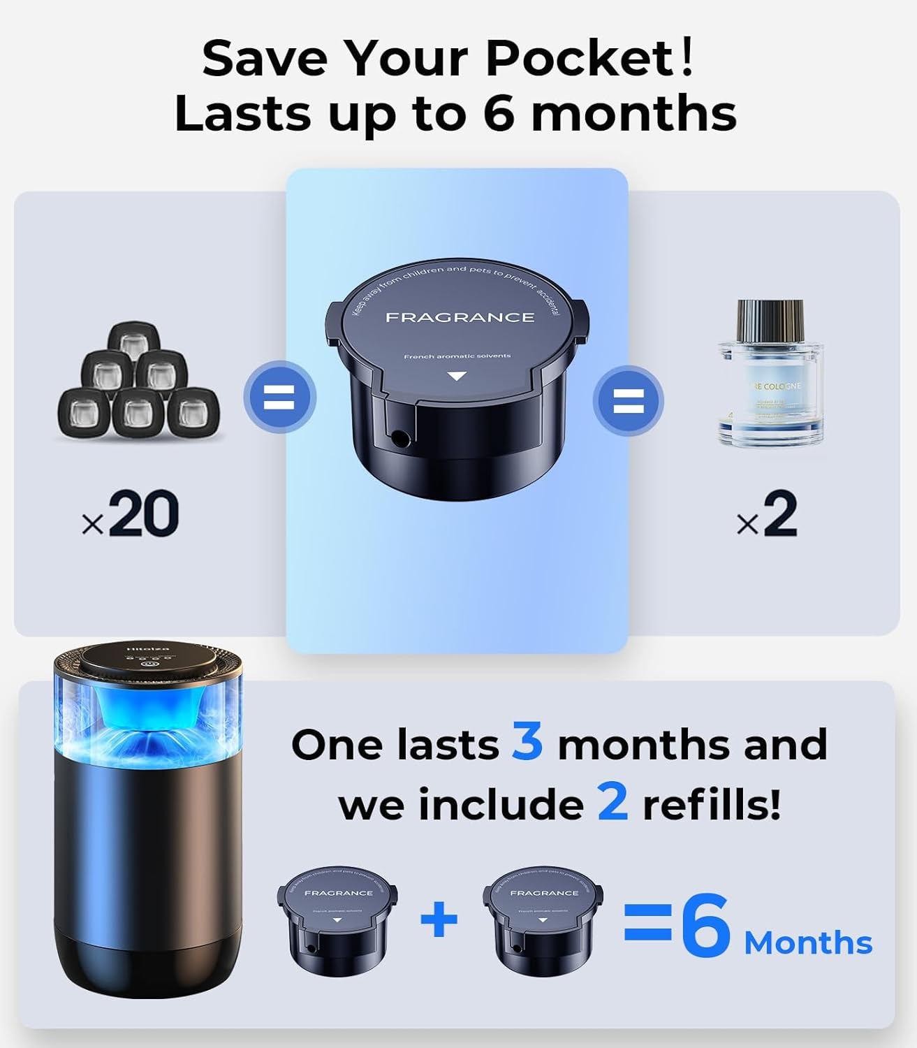 - 【Latest Ultrafine Misting Technology】The Hitolza air freshener car utilizes cutting-edge ultrafine misting technology to atomize the fragrance liquid into 5μm particles. This allows the scent to last longer and diffuse more widely throughout the car. No additional chemical misting agents are needed, ensuring a pure and natural fragrance experience