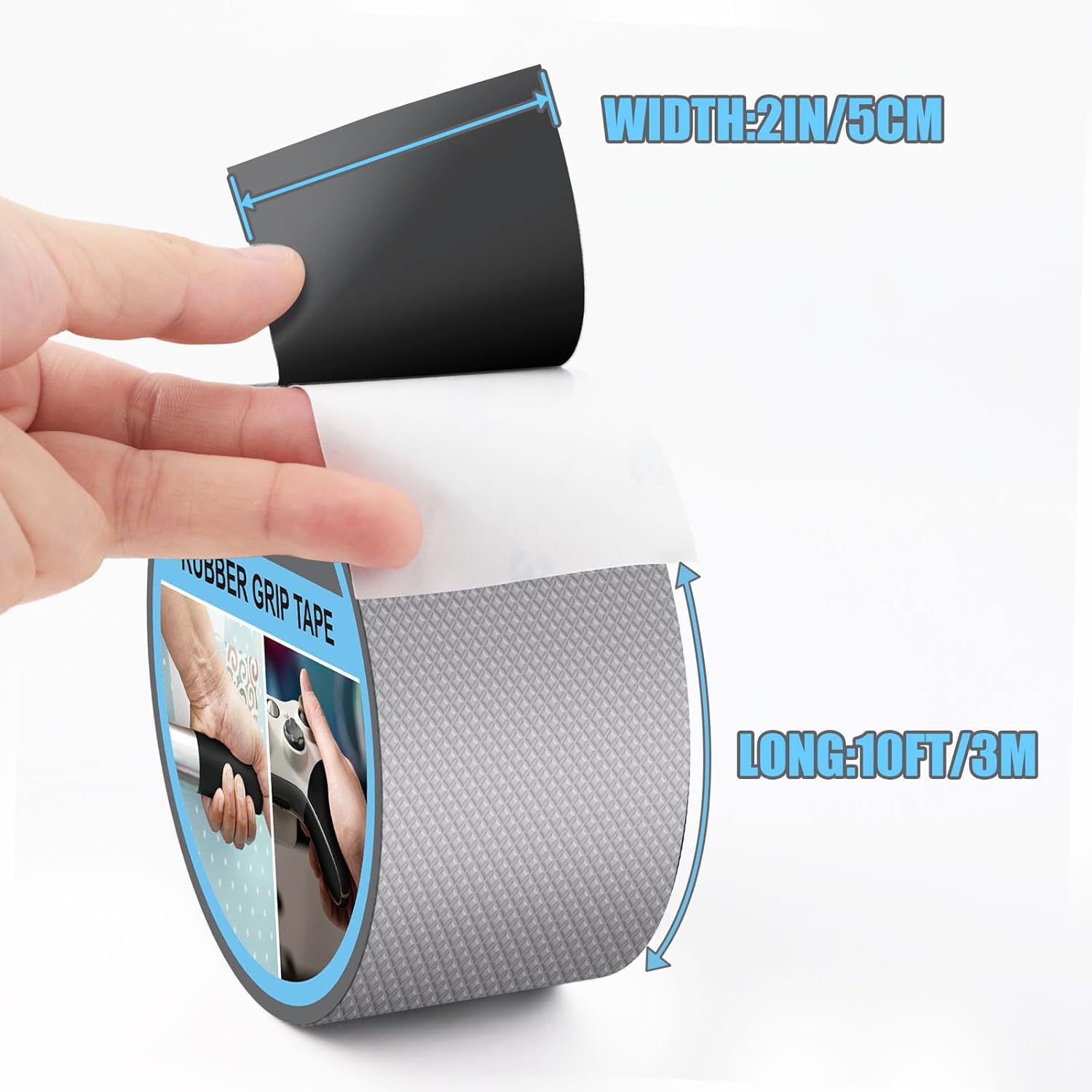 Rubber Grip Tape, Ultra-Thin Strong Adhesive Anti-Slip Waterproof Heat Resistant Wear-Resistant Cushion Pad, Making Handles or Contact Surfaces Safer, with Grip and Comfort (Gray, 2In x 10Ft)
