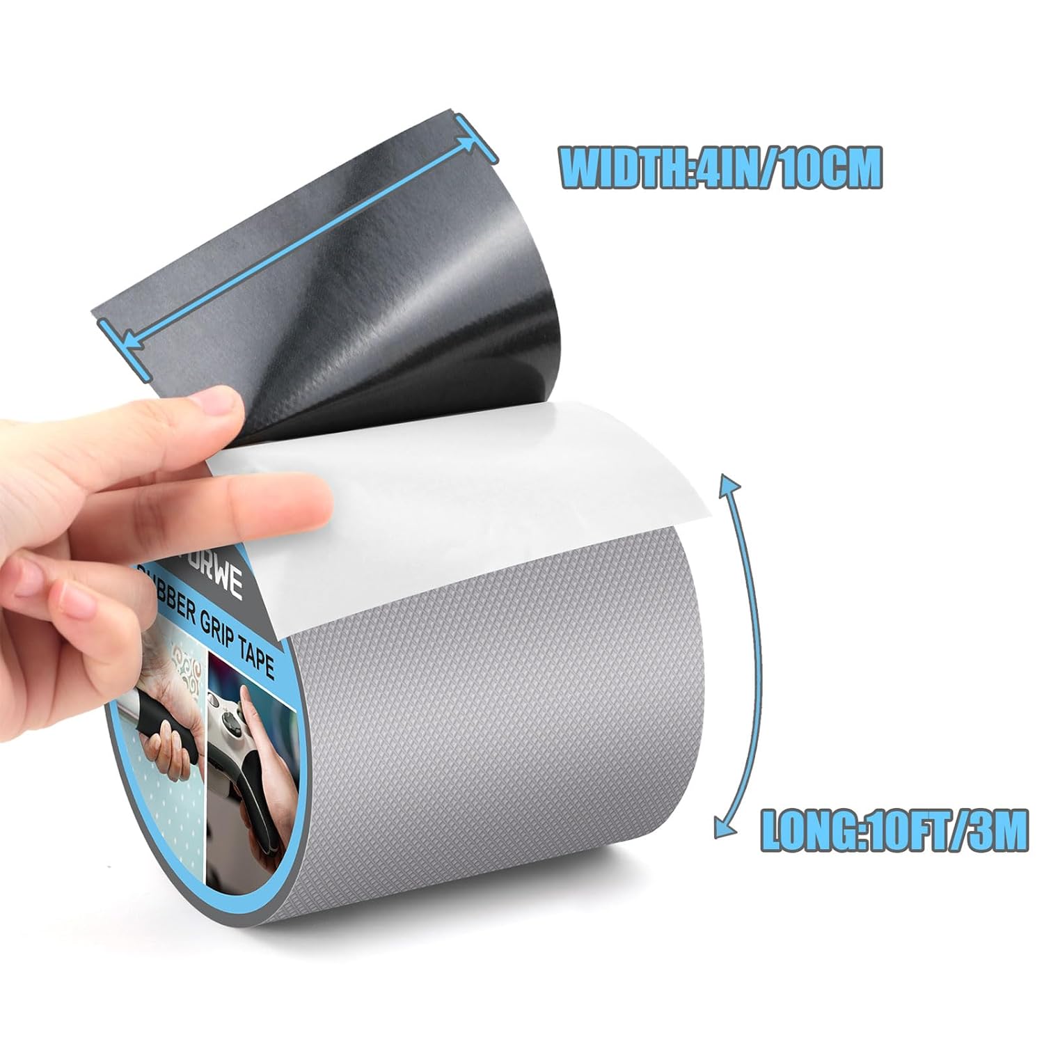 Rubber Grip Tape, Ultra-Thin Strong Adhesive Anti-Slip Waterproof Heat Resistant Wear-Resistant Cushion Pad, Making Handles or Contact Surfaces Safer, with Grip and Comfort (Gray, 4In x 10Ft)
