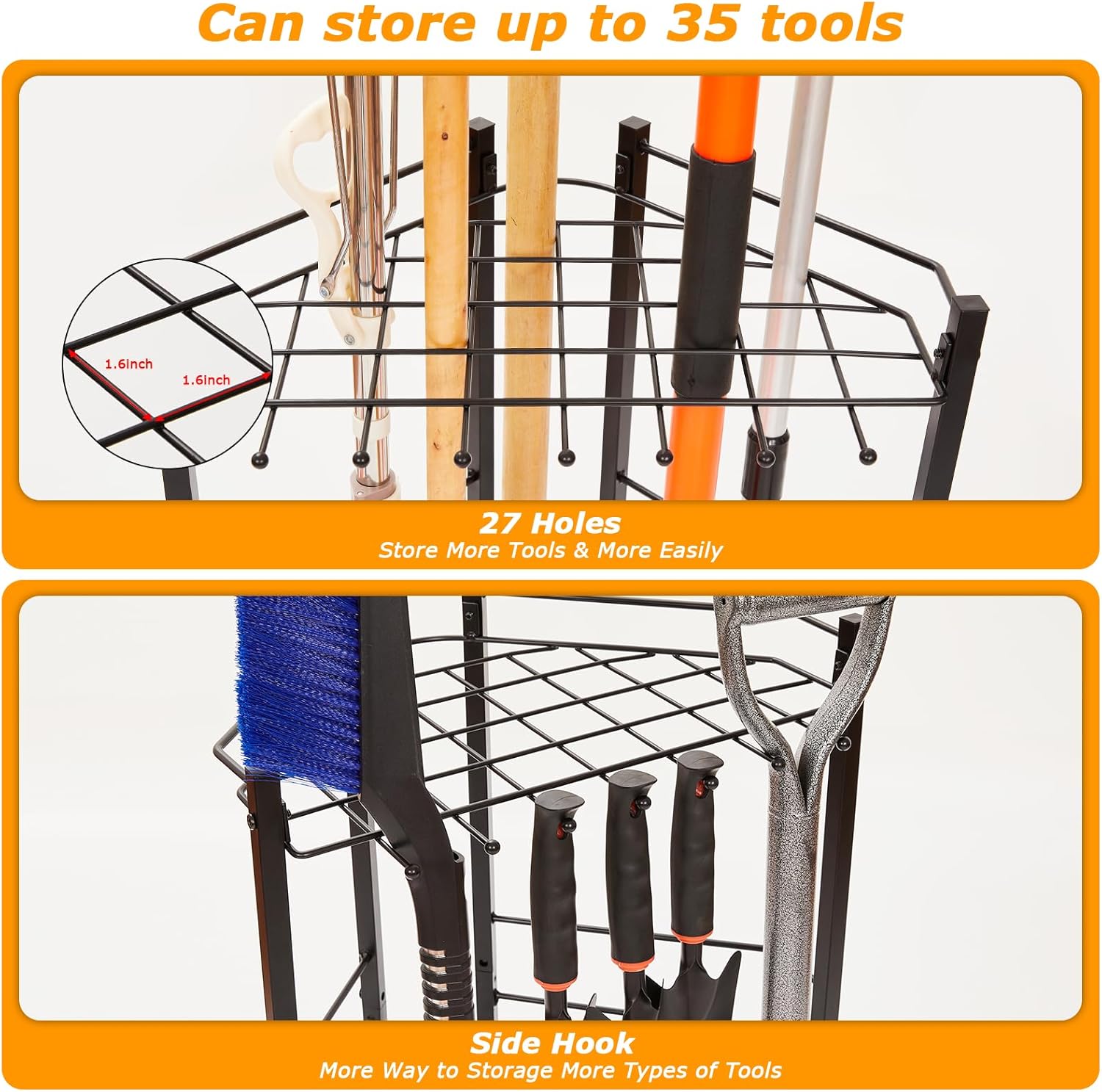 - Multifunctional Garden Tool Organizer: Yard tool organizer can organizes up to 35 garden tools, including yard tools, farm tools, lawn tools, and cleaning equipment etc. Provide large capacity in a compact size. It simplifies tool storage and organization. Suitable for garage, garden, shed, outdoors and backyards