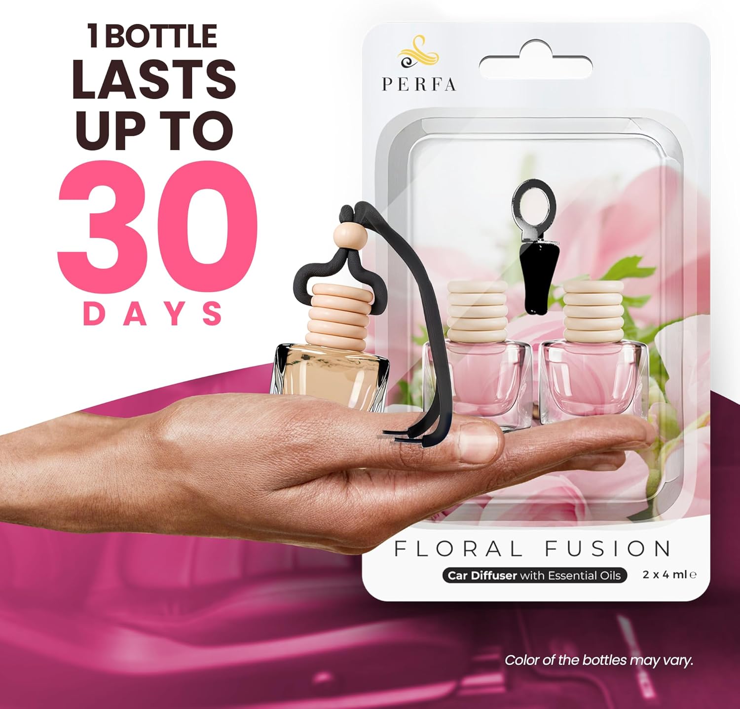 - INFUSED WITH ESSENTIAL OILS - Our car vent air freshener is expertly crafted with the finest floral essential oils, inspired by the freshness of spring. This premium car freshener and car oil diffuser enhances your driving experience with a soothing and long-lasting scent. Perfa’s car freshener diffuser goes beyond the ordinary, creating a therapeutic atmosphere that promotes focus and relaxation while on the road.