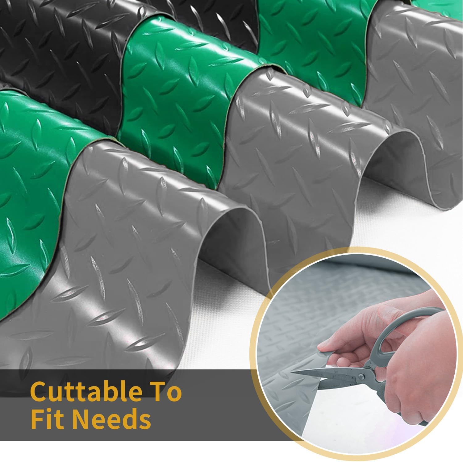 - DURABLE & SLIP-RESISTANT: Upgrade 2.0MM Sturdy Thicker PVC Material. Garage floor mats are with embossed diamond plate patterns which are totally anti-slip for safe in/out, greatly increasing the traction.