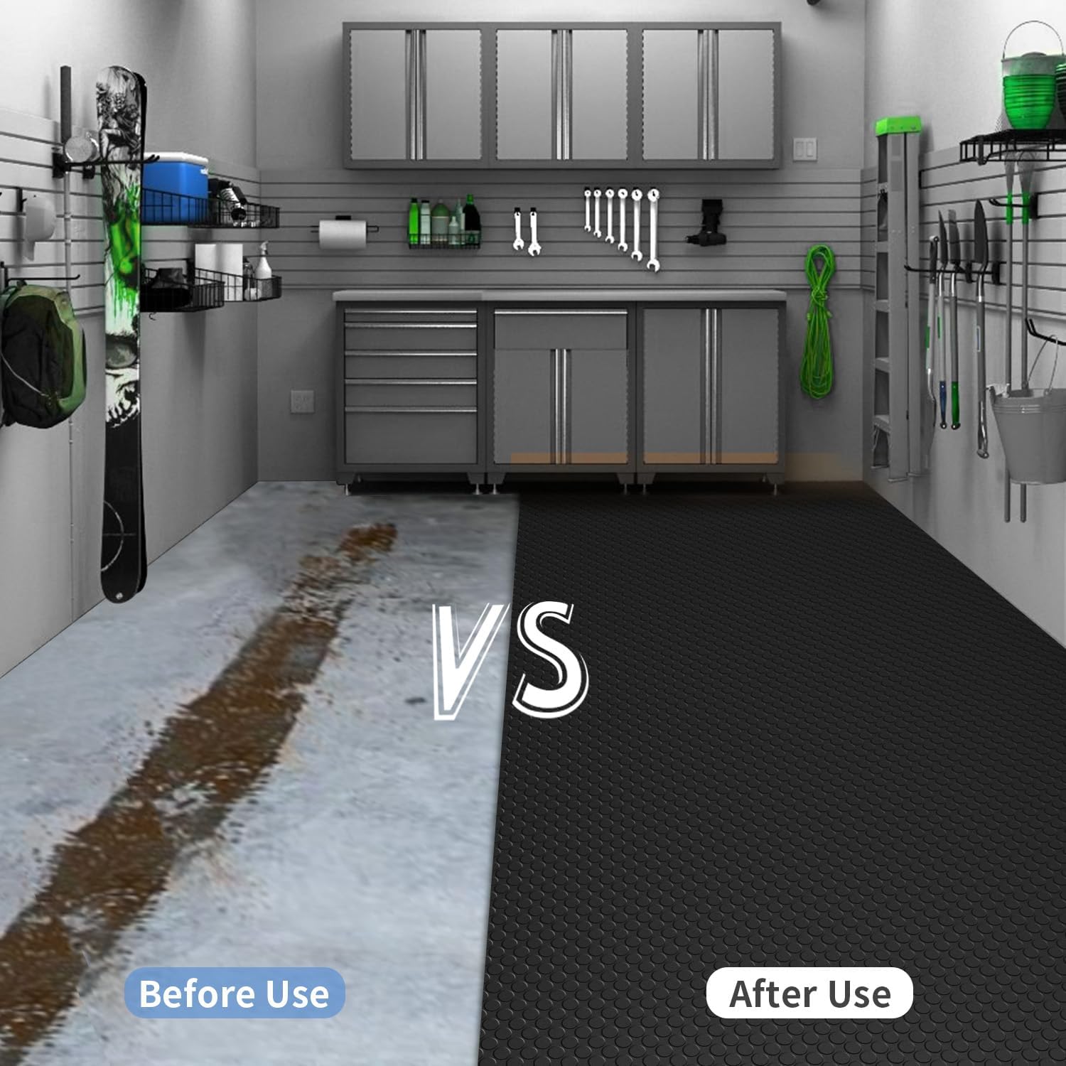 - EASY TO INSTALL & CLEAN: Quick and easy to install by just rolling out the floor mat on the surface for a smooth and even display.Our heavy duty garage floor protector mat are very easy to clean with the vacuum cleaner, brooms, and wet or dry mop.