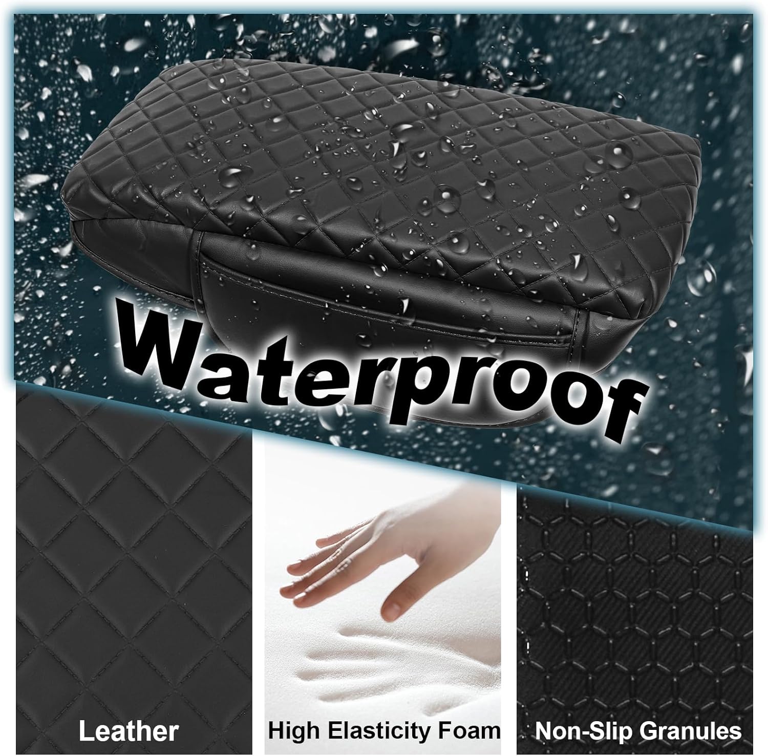 - Design: Face looks in matte Black IN well Lether Pu Material with Black lines ,Long time life working to protected your armrest pad .. Backside with Anti-Slip Despensing also come with the stretchy elastic band design which the Pad cover will no be Moving after cover on the armrest box cap..