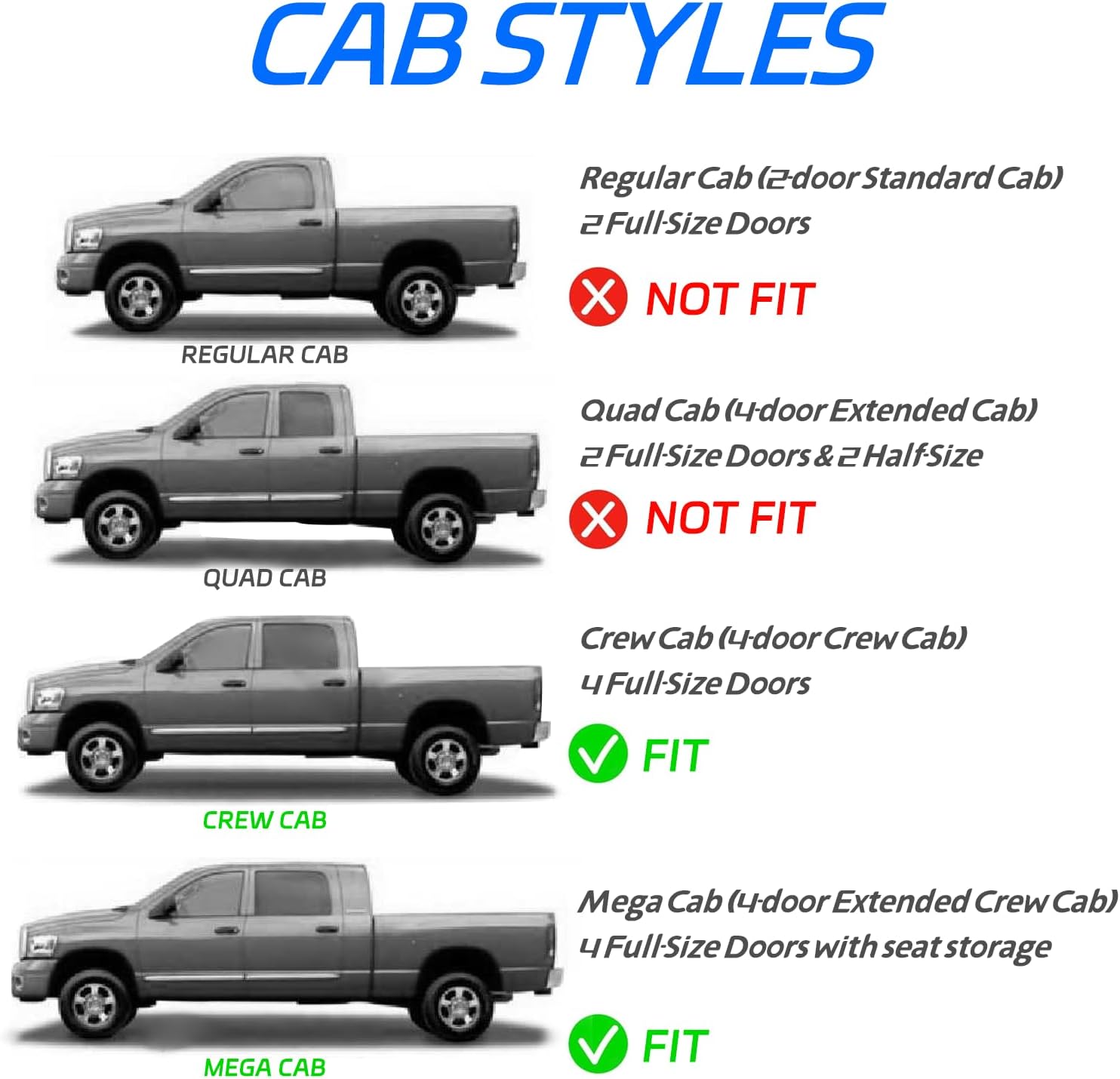 - : Vehicle Service Type fit for 2009-2018 Ram 1500 Crew Cab, 2010-2024 Ram 2500 & 3500 Mega/Crew Cab (4 FULL-SIZE Doors), 2019-2023 Ram 1500 (Classic Body Only) fit for 2009-2018 Ram 1500 Crew Cab, 2010-2024 Ram 2500 & 3500 Mega/Crew Cab (4 FULL-S⊠See more