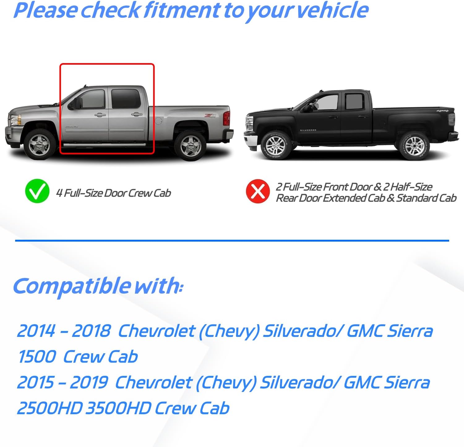 - : Vehicle Service Type FIT for 2014 - 2018 Silverado/ GMC Sierra 1500 Crew Cab, 2015 - 2019 Silverado/ GMC Sierra 2500HD-3500HD Crew Cab (4 FULL-SIZE Doors) FIT for 2014 - 2018 Silverado/ GMC Sierra 1500 Crew Cab, 2015 - 2019 Silverado/ GMC Sierra 2⊠See more