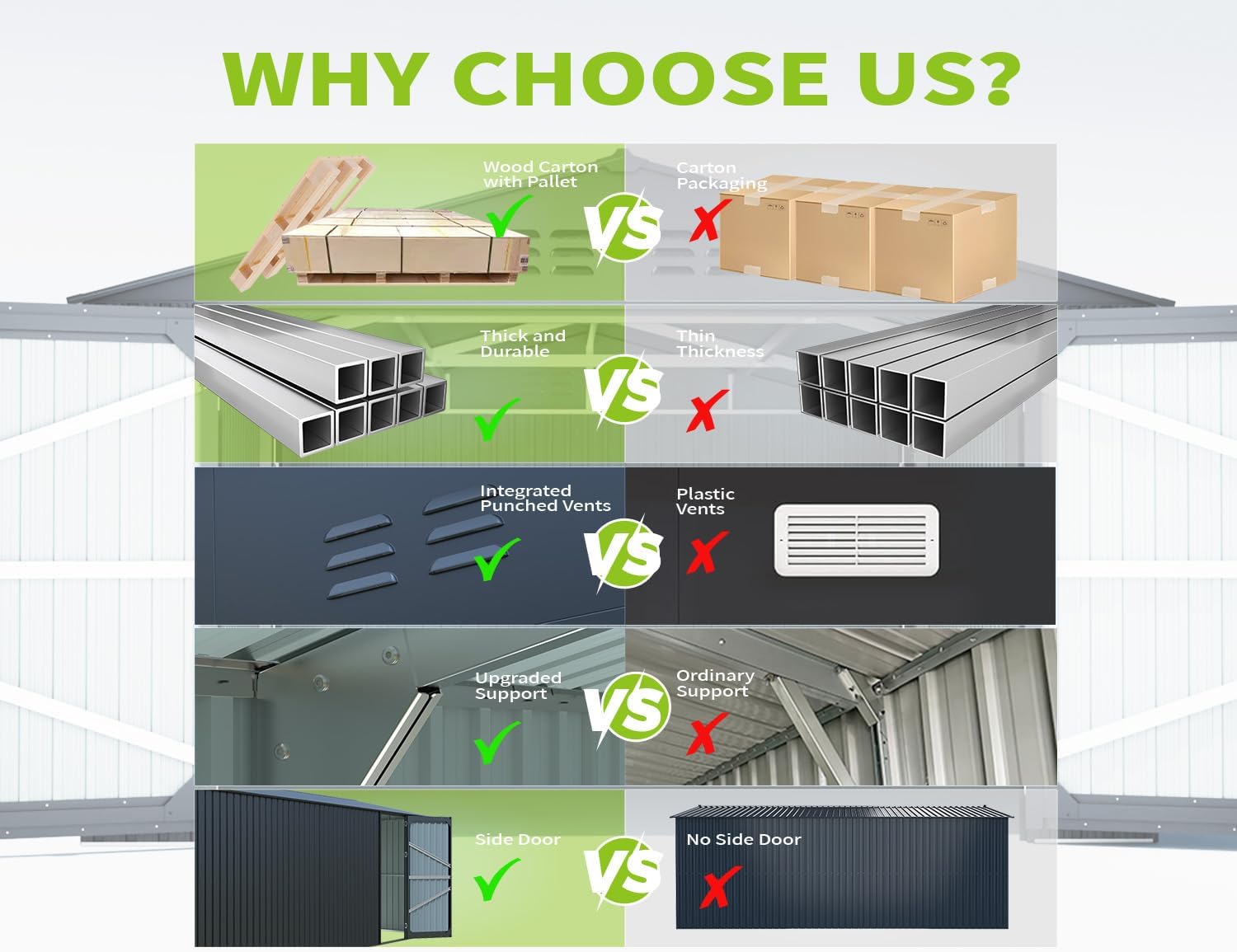 - ๐ก๐๐๐๐ ๐๐ฉ๐ ๐ซ๐๐๐๐ ๐๐ญ๐ซ๐๐ง๐ ๐ญ๐ก: Featuring a reinforced tubular steel frame and thickened galvanized panels, this large metal shed is built for durability. It offers superior resistance to rust, UV exposure, and moisture, while its robust structure is rated to withstand winds up to 50 MPH and snow loads of 20 lbs/ftยฒโmaking it 40% stronger than standard sheet-metal sheds.
