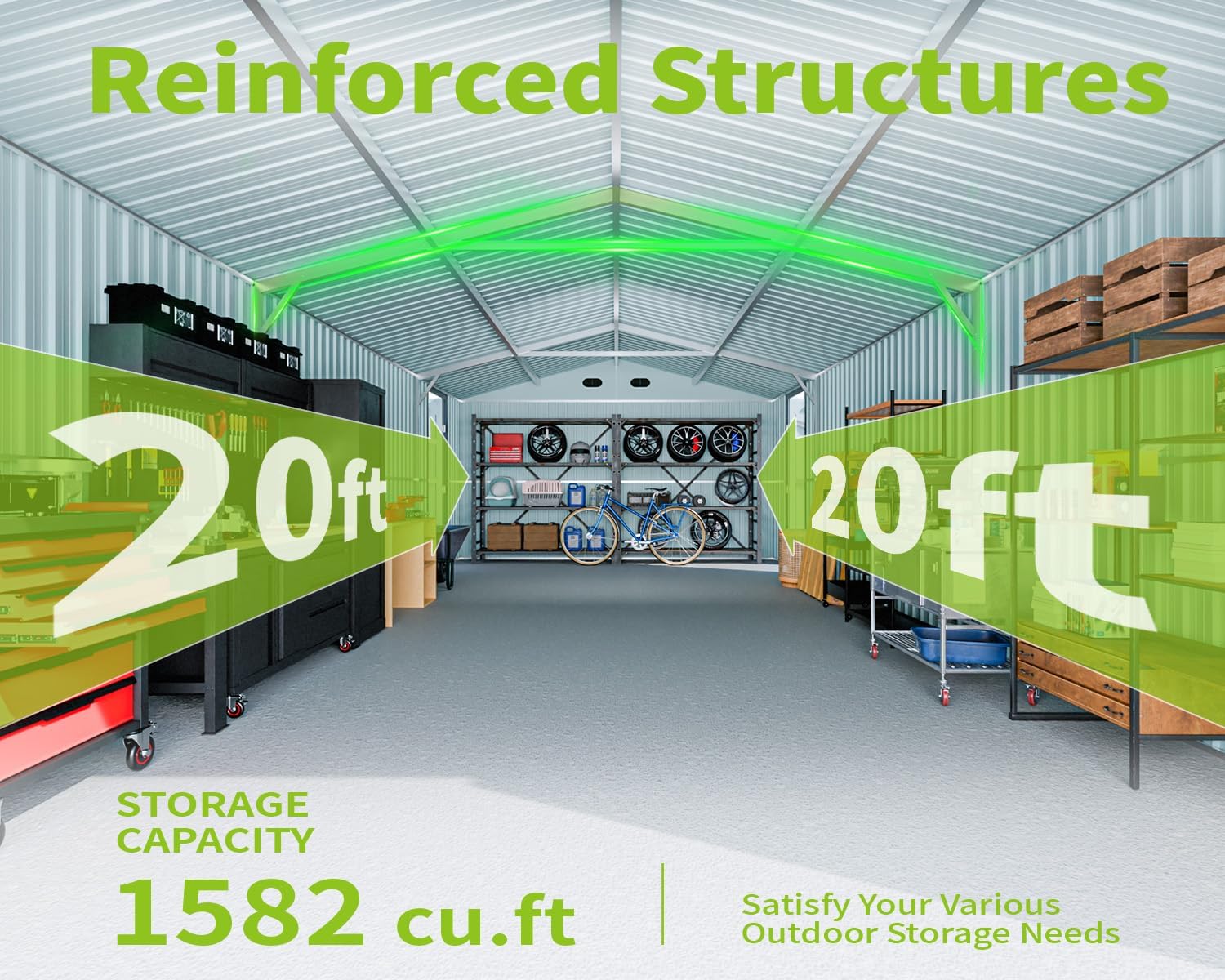 - ๐ก ๐๐ฑ๐ฉ๐๐ง๐ฌ๐ข๐ฏ๐ ๐๐ญ๐จ๐ซ๐๐ ๐ ๐๐ก๐๐: Discover our 20x13 ft large metal storage shed, which provides 250 sq. ft. of usable floor space. Ideal for storing vehicles, tools, lawn equipment, and bicycles. This shed offers versatility as it can also be a workshop or a play area for kids, helping you to organize your outdoor space and reduce clutter in your backyard, basement, or garage.