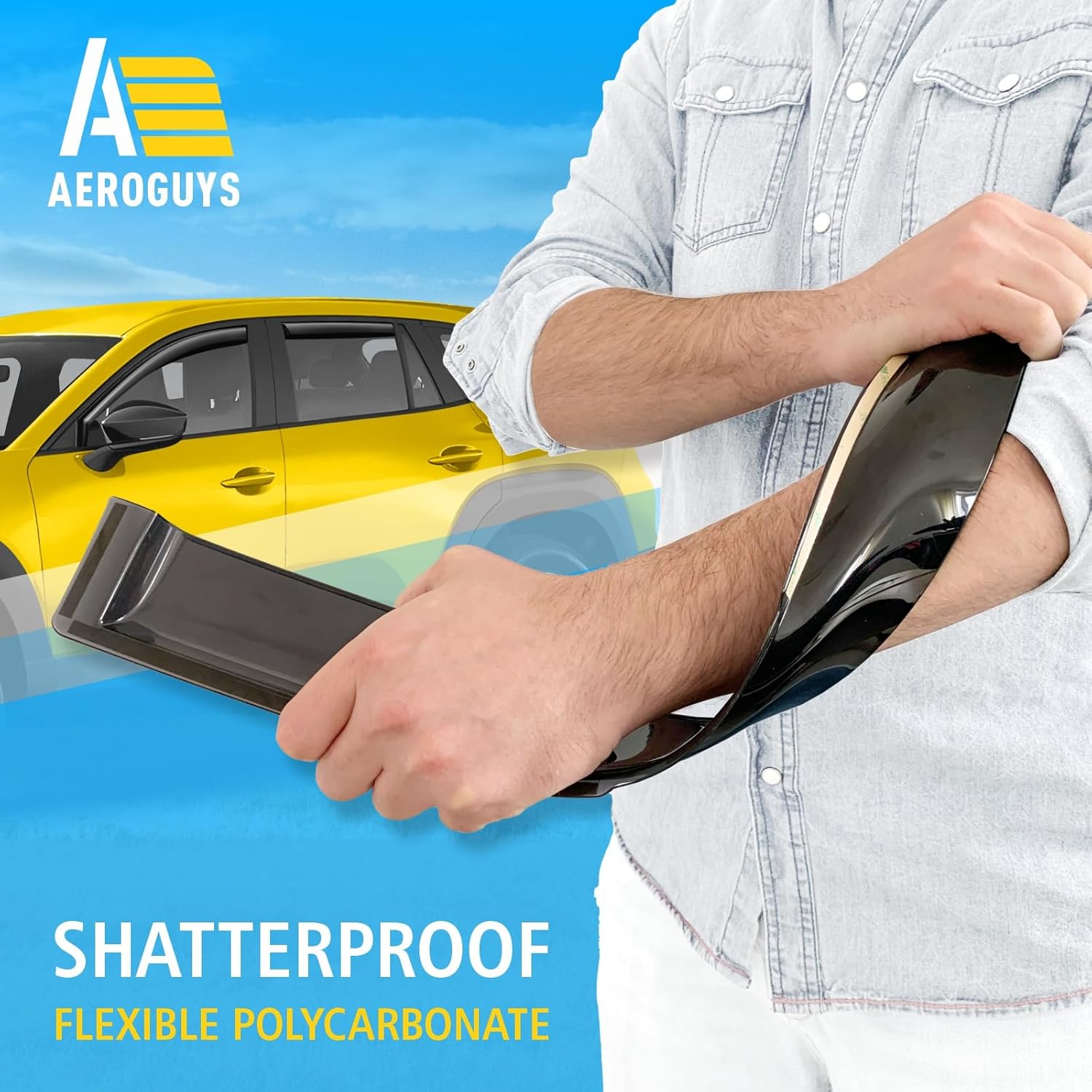 - Incredibly Durable AEROGUYS Auto Window Deflectors – They are made with strong and tough polycarbonate which is clear and scratch-resistant. They also provide UV protection making your ride more comfortable under all weather conditions.