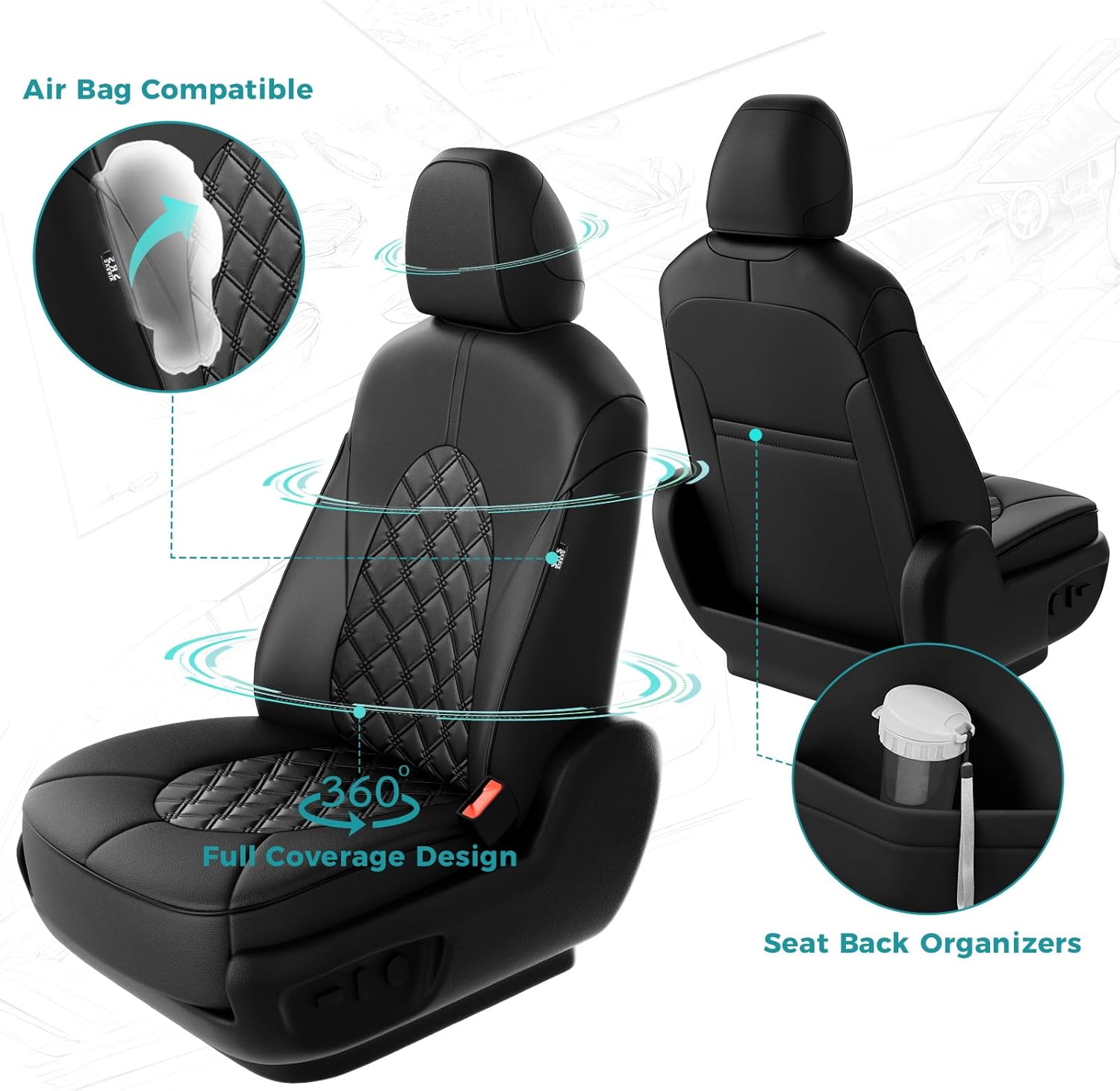 - ăMaintain Existing Functionalityă: Tailored to fit snugly all details of car seat covers for Toyota camry and ensure the full function, not affecting at all the use of airbag, armrests, safety belt, child seats and seat adjustments. full wrap front car seat covers come with seat back organizer for improved user convenience.