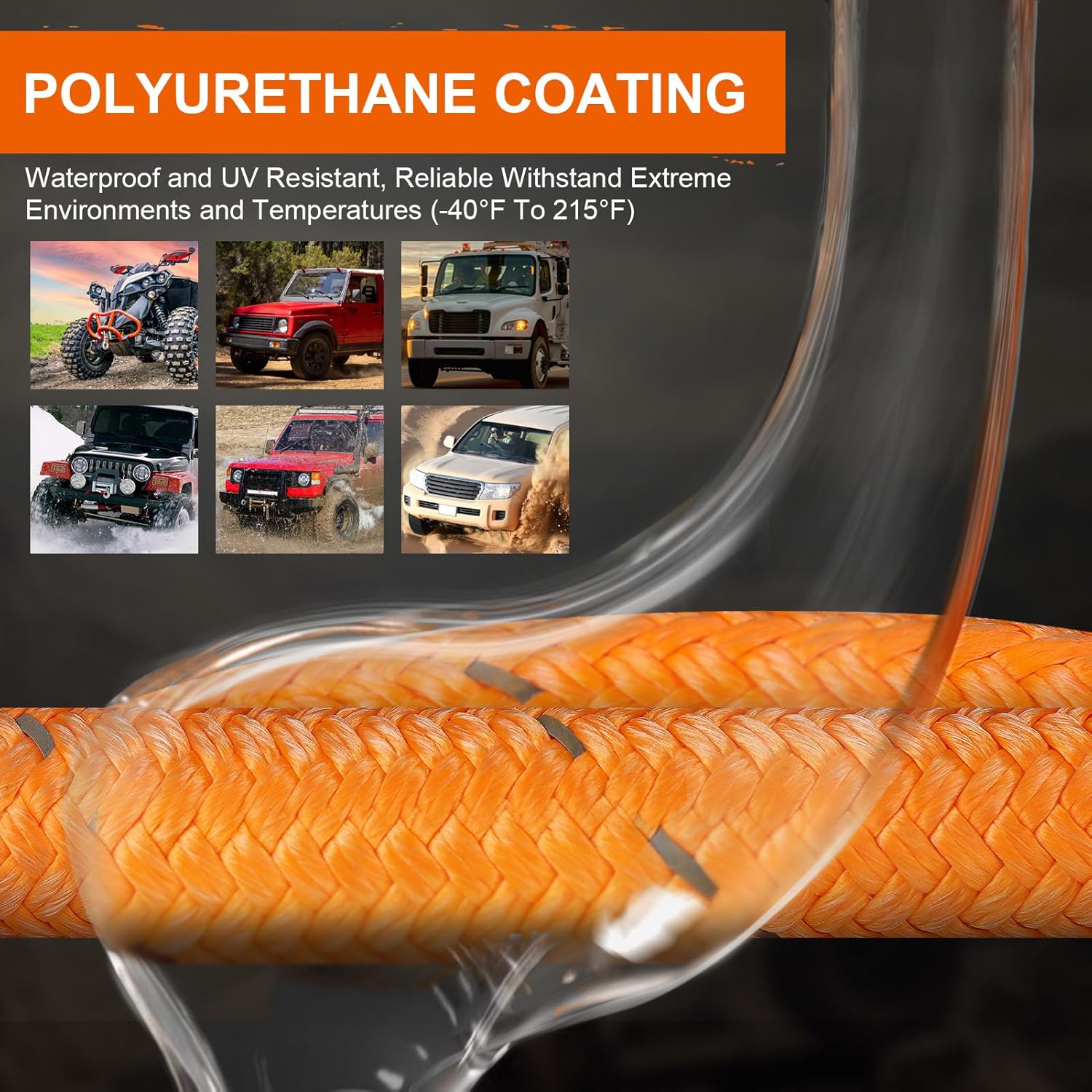 - [Sturdy and Durable] - This offroad recovery kit is made of nylon, double braid and high density, not easy to break. The surface is coated with military specification high abrasion resistant polymer coating, waterproof and UV resistant, it can withstand extreme temperatures from -40°F-215°F. Suitable for all kinds of harsh environments, such as mud, desert, snow.