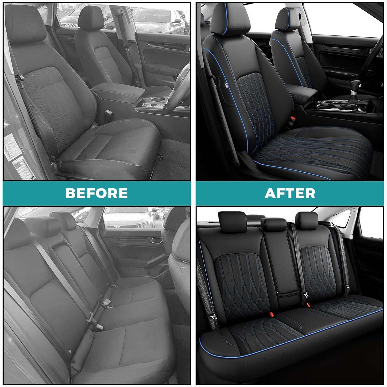Seat Covers for Honda Civic Hatchback EX, Sport Touring, EXL 2016 2017 2018 2019 2020 2021, Faux Leather Car Seats Cover Full Set(Rear Row 40/60 Split & Folding Backrest)-BlackBlue