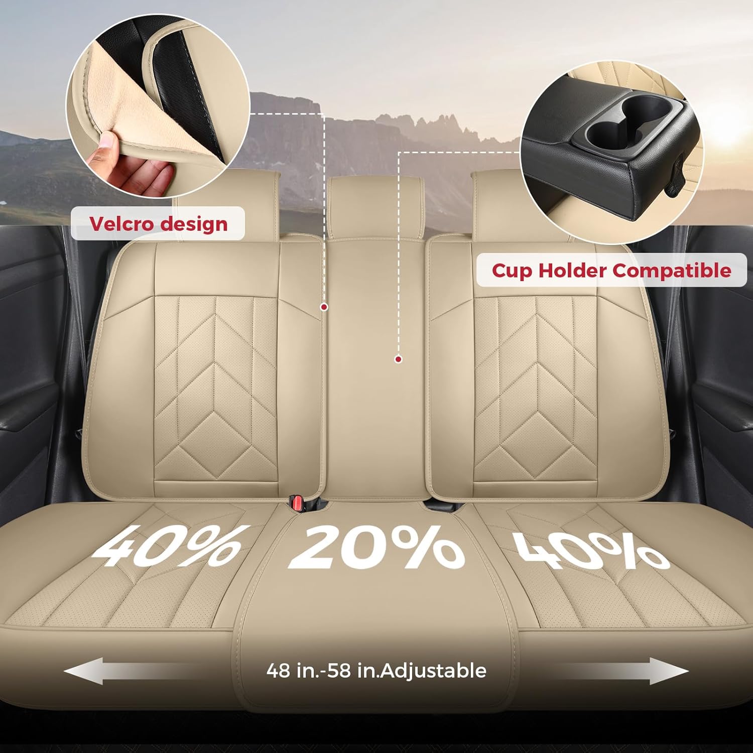 Beige Car Seat Covers Full Set - Waterproof Leather Car Seat Protector Universal Fit Altima Murano Accord Avalon