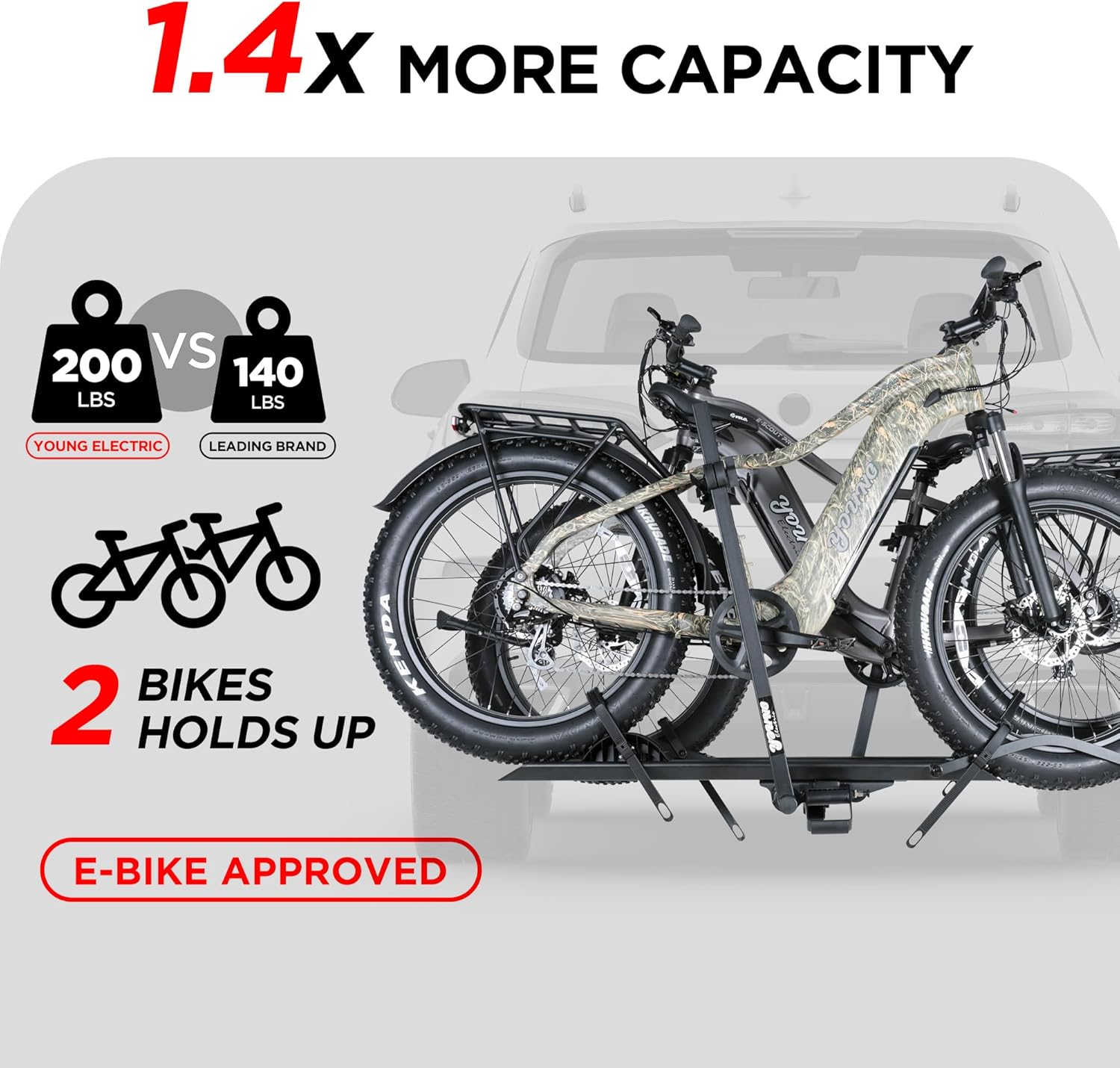 200LBS EZ-FOLD Aluminum 2-Ebike Carrier with Ramp for Bikes and Electric Bike, Car SUV Truck Van RV and Trailer