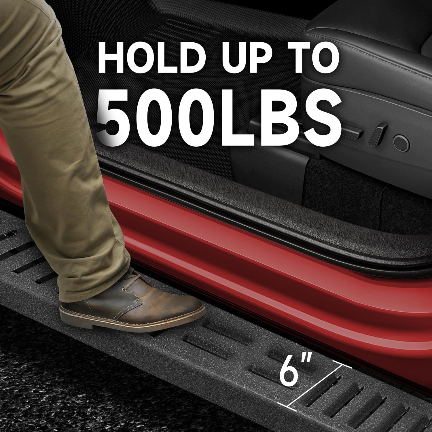 - 【Premium Material】Made from high-quality heavy-duty carbon steel with a black powder-coated finish, these running boards are waterproof, corrosion-resistant, and rust-proof, ensuring extended durability and a longer lifespan.