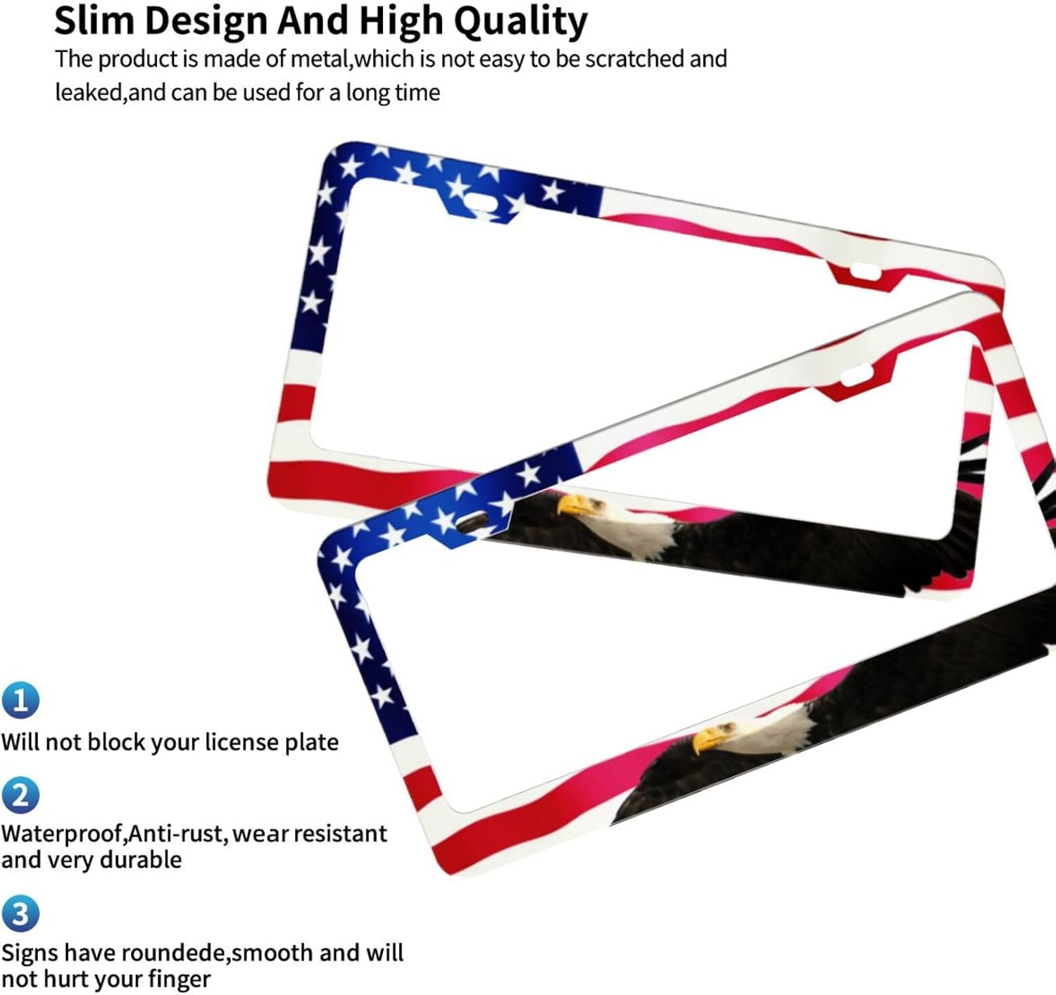 - Pattern Design: The license plate frames eagle Is Wrapped By The license plate frames american flag, and Bright Design Makes It Eye-Catching And Positive, Give You A Different Visual Impact, Let Our license plate frames american More Cute