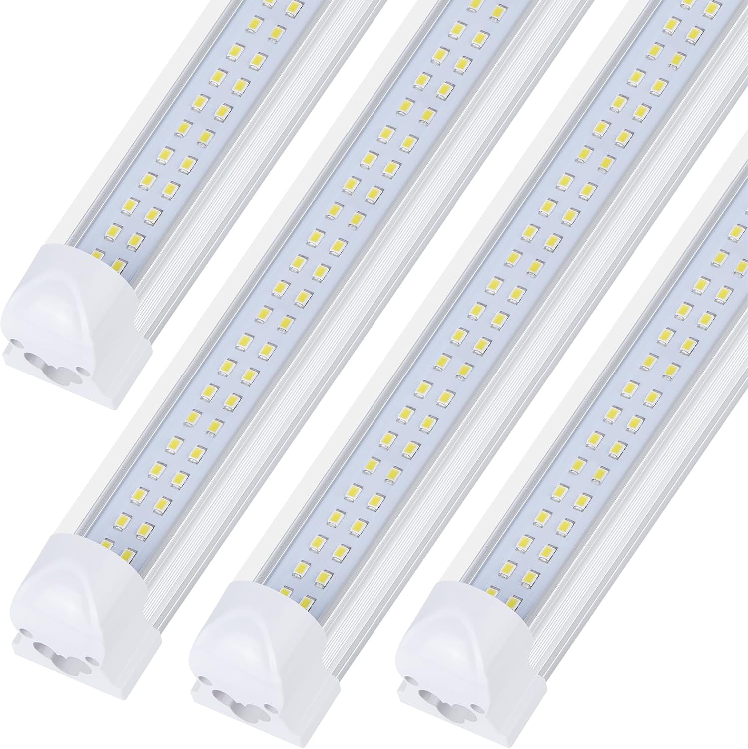 - 2.High Brightness & Energy Efficiency: With four rows of 576pcs LED chips and a Flat-shaped 180-degree angle design, LED Shop Lights 8FT provide 100W of 6500K cool white illumination, delivering over 15000 lumens (>150lm/w) of bright, energy-saving light (for Garage, Warehouse, Workbench)