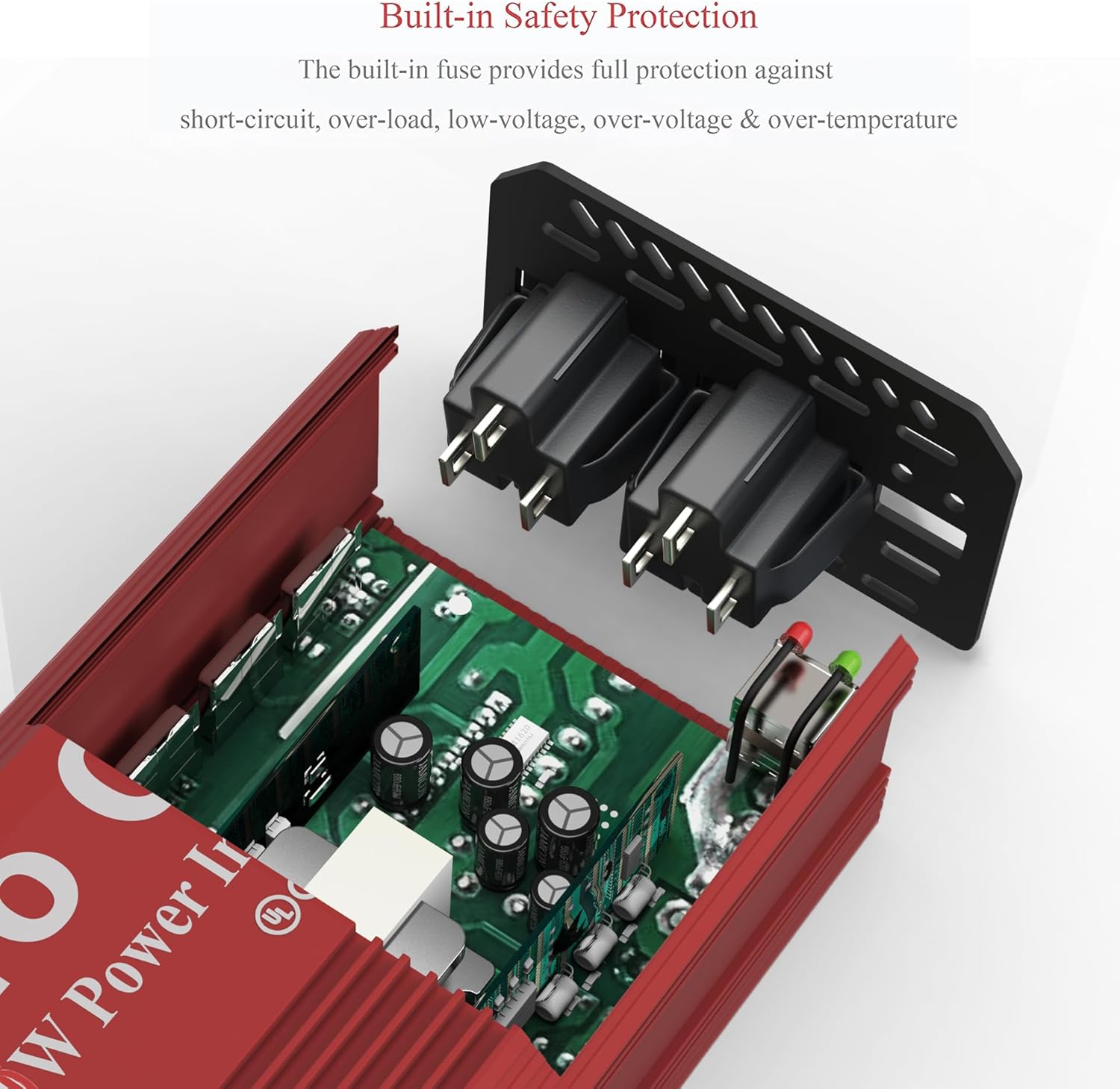 - 【Built-in Safety Protection】The built-in fuse ensures complete protection against short circuits, overloads, low voltage, overvoltage, and overheating. The cooling fan activates automatically when the internal temperature reaches 113°F (45°C), helping to maintain a safe and optimal operating temperature.