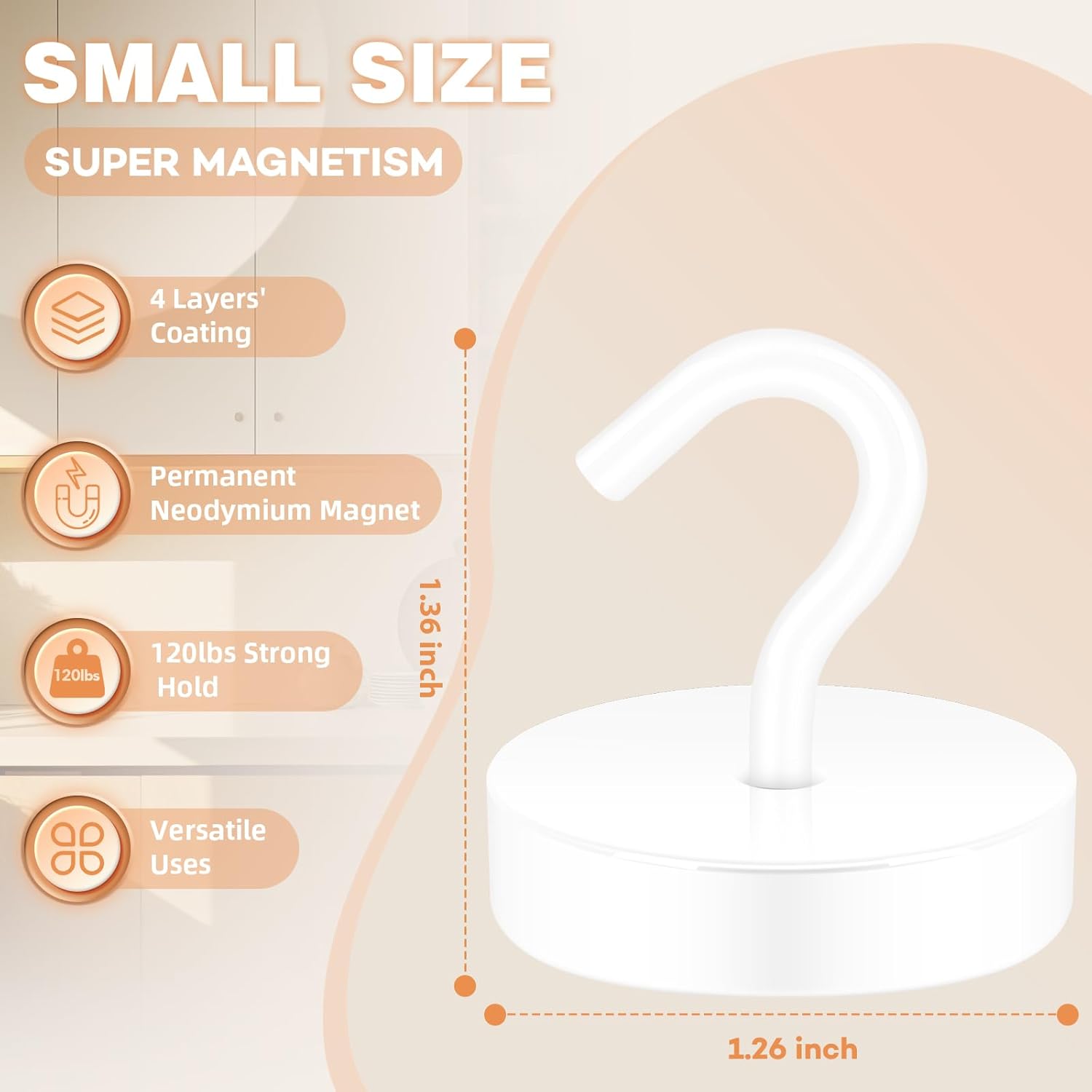 Neosmuk Magnetic Hooks, Cruise Ship Essentials, 120lb+ Heavy Duty Magnetic Hooks for Cruise Cabins, Refrigerator, Grill, Hanging, and Travel | Extra Strong Must-Haves Magnet Hook,White,Pack of 10