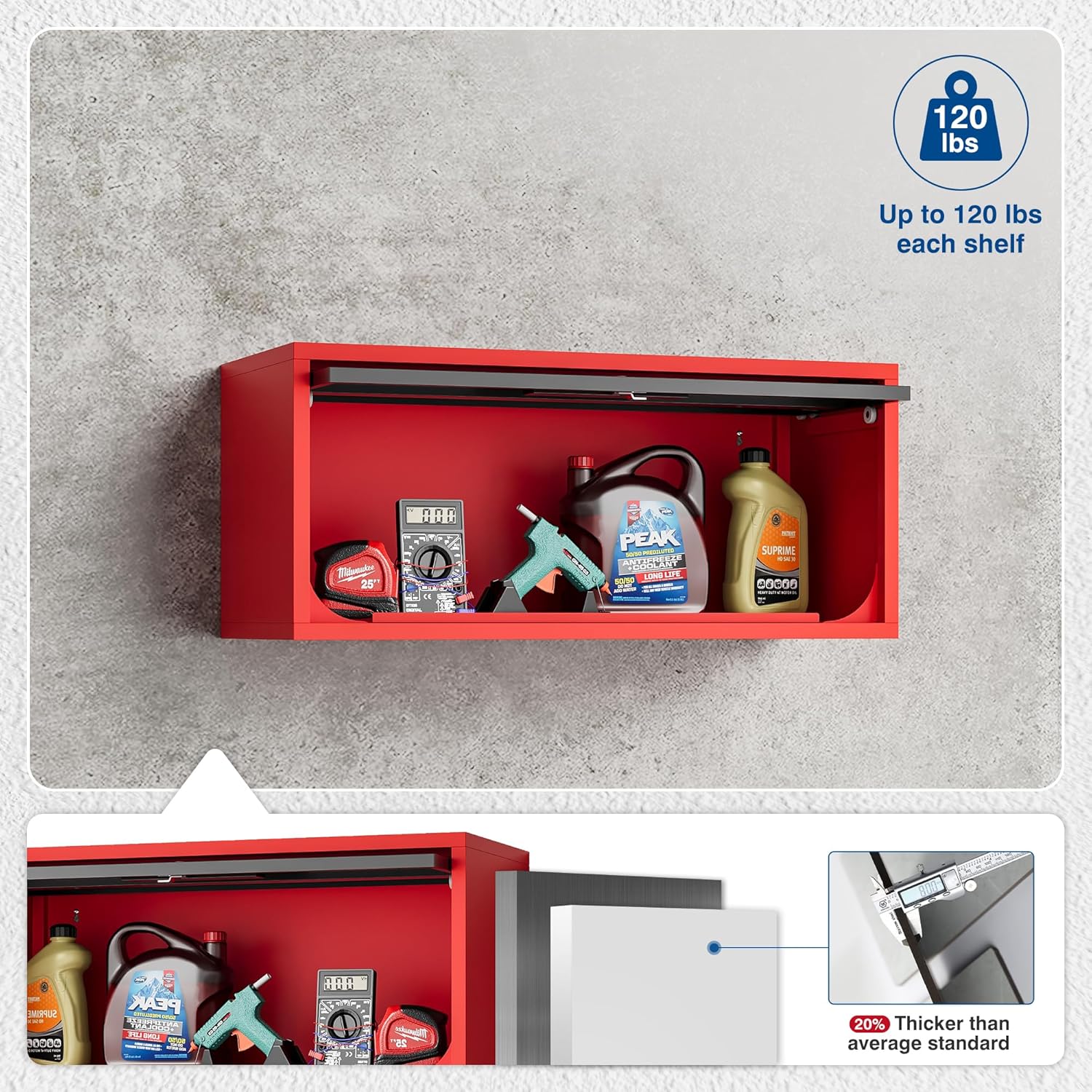 Metal Storage Cabinet Black&Red Wall Cabinets with Locking Door - Wall Mounted Storage Cabinet for Garage Warehouse Home Office - Assembly Required