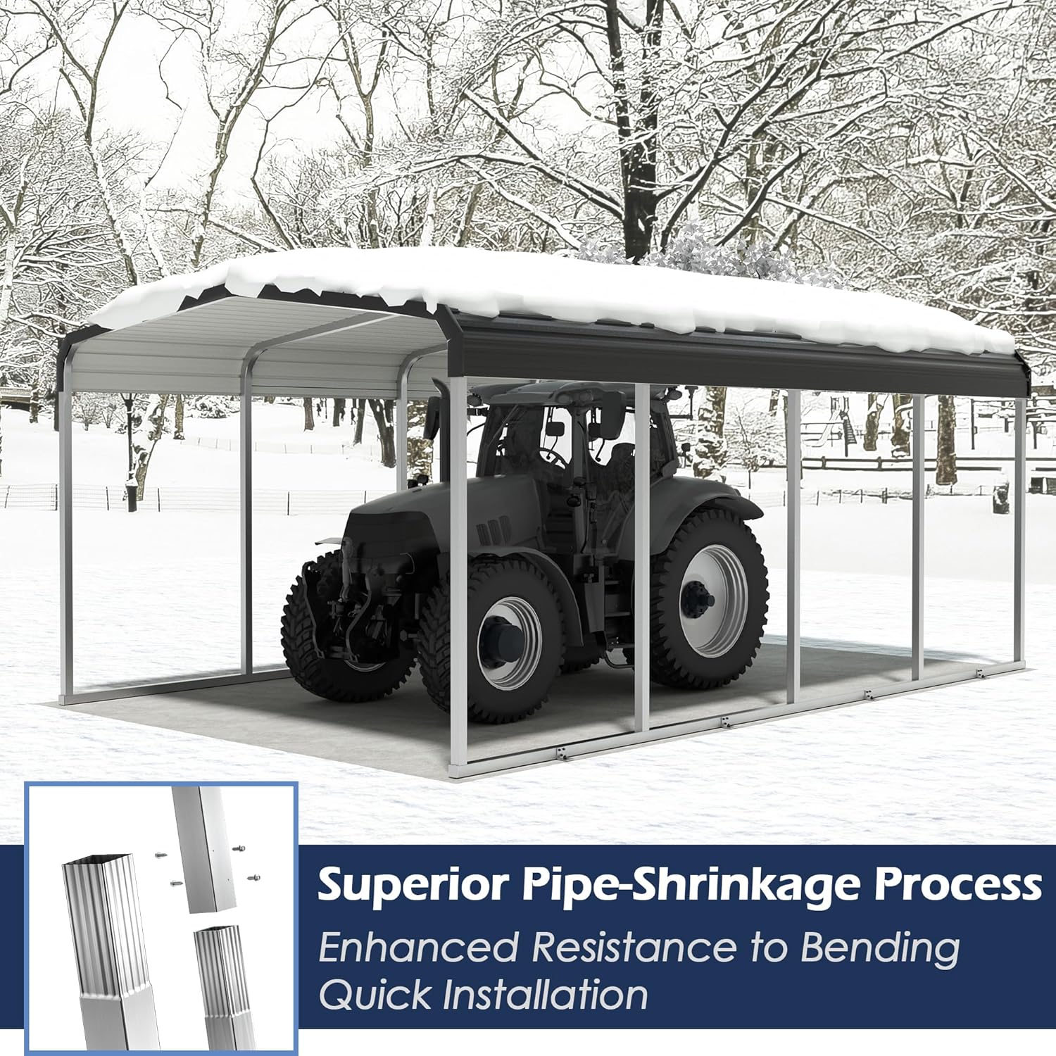 - 【Unique Galvanized Frame】The metal carport features a fully galvanized frame, giving it a distinctive silver appearance. Galvanized frames offer superior resistance to corrosion and provide a stronger surface, eliminating concerns about peeling or scratching common with powder-coated frames
