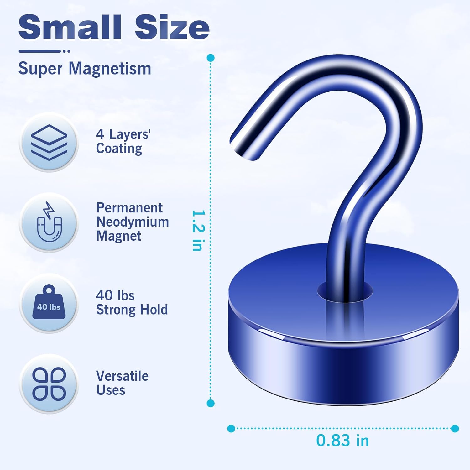 Neosmuk Magnetic Hooks, Cruise Ship Essentials, 40lb+ Heavy Duty Magnetic Hooks for Cruise Cabins, Refrigerator, Grill, Hanging, and Travel | Extra Strong Must-Haves Magnet Hook,Navyblue,Pack of 10