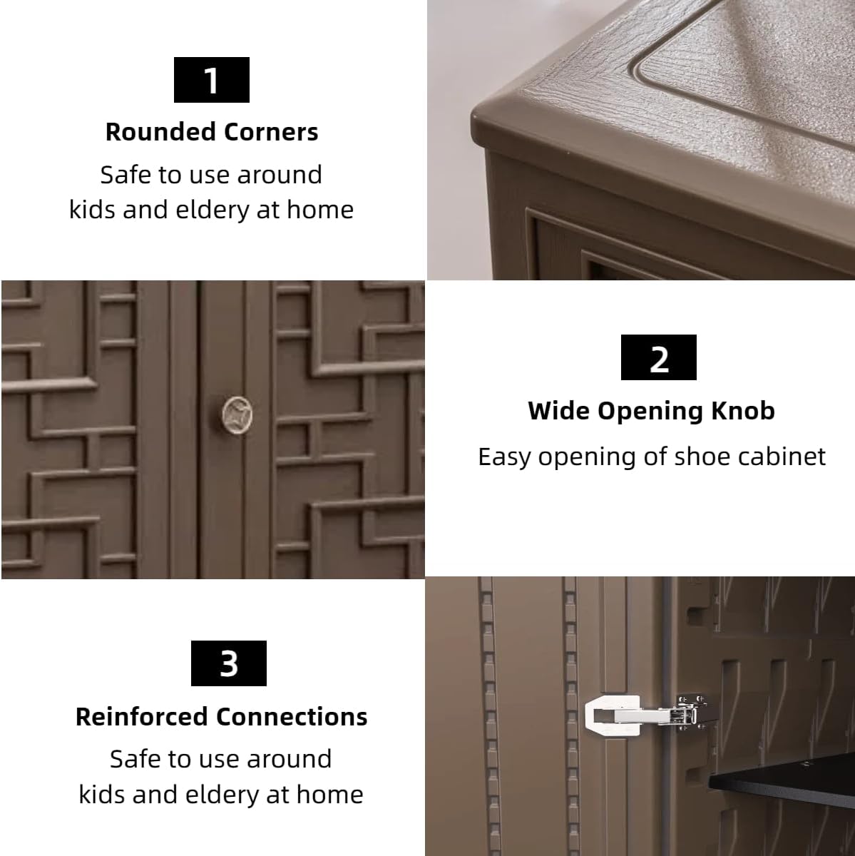 - Customizable Shelving: Our Outdoor Storage Shed includes versatile compartments, we supply only one shelf for free with the outdoor plastic cabinet, the shelving size is 33"L x10"W x 0.6"H
