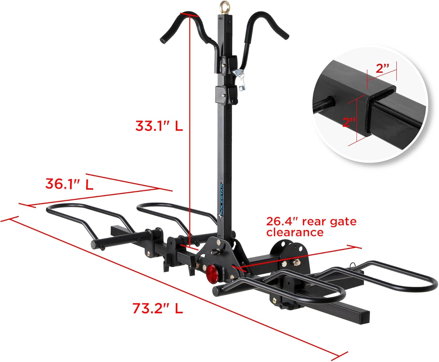 - Maximize Vehicle Space: Foldable & Tilt-back design allows users to fold up the rack when not in use, Free up precious cargo space inside your vehicle by safely carrying your bikes on the rear hitch. The quick-release tilting feature provides easy access to your vehicle's trunk, eliminating the need to detach the bike rack.