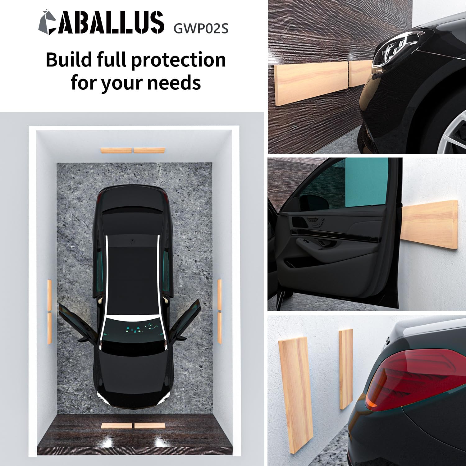 GWP02S Wood Grain Garage Wall Protector Car Door Protectors, Garage Accessories, Parking Stopper for Garage, Tool-Free, Designed in Germany (4-Pack Wood Grain)