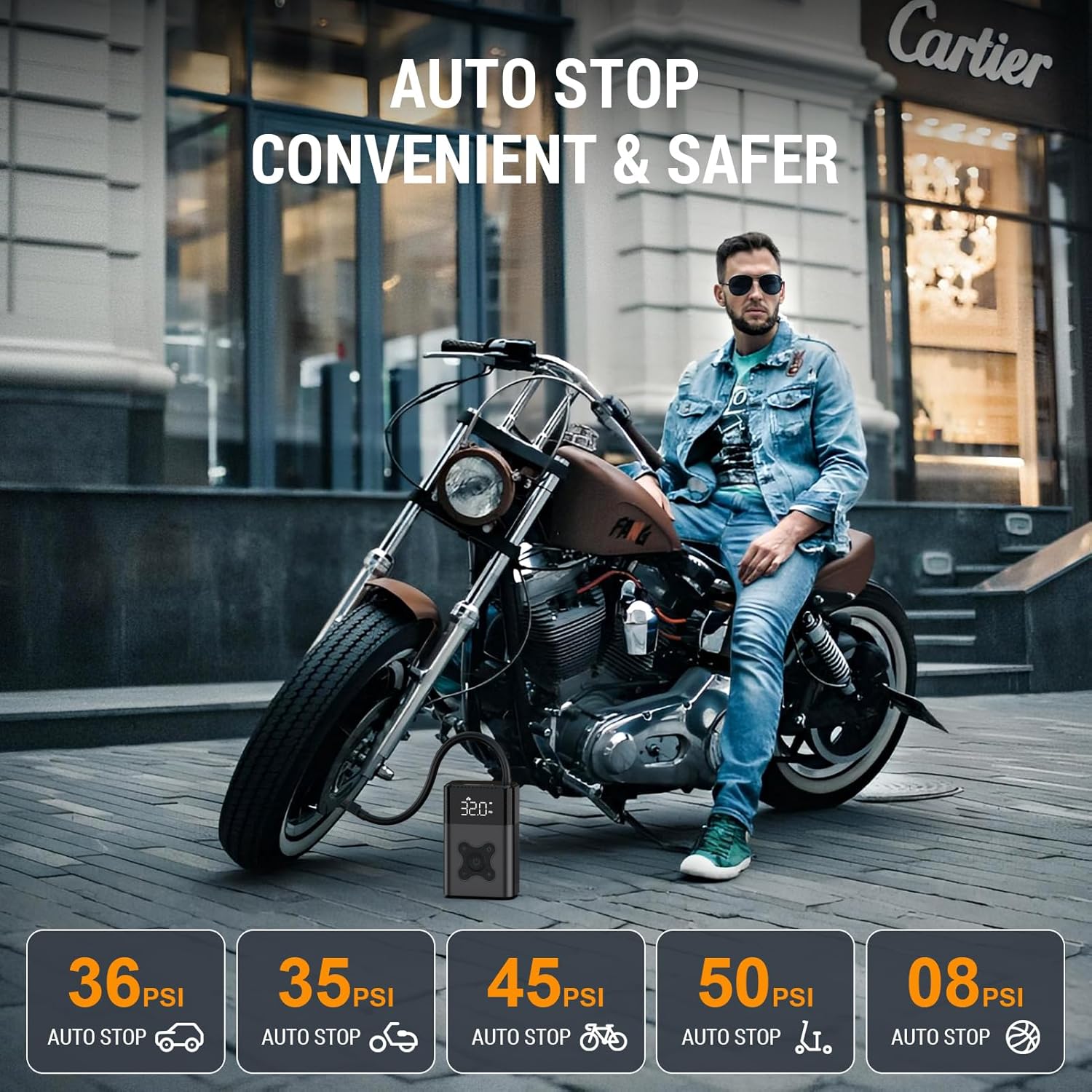 - Extremely Versatile:This portable air compressor is a multi - functional tool. It serves as a tire pump for cars, motorcycles, and bikes, a pump for swimming rings and balls, and also features an LED light and a digital tire pressure gauge. Its versatility makes it useful in a wide variety of scenarios
