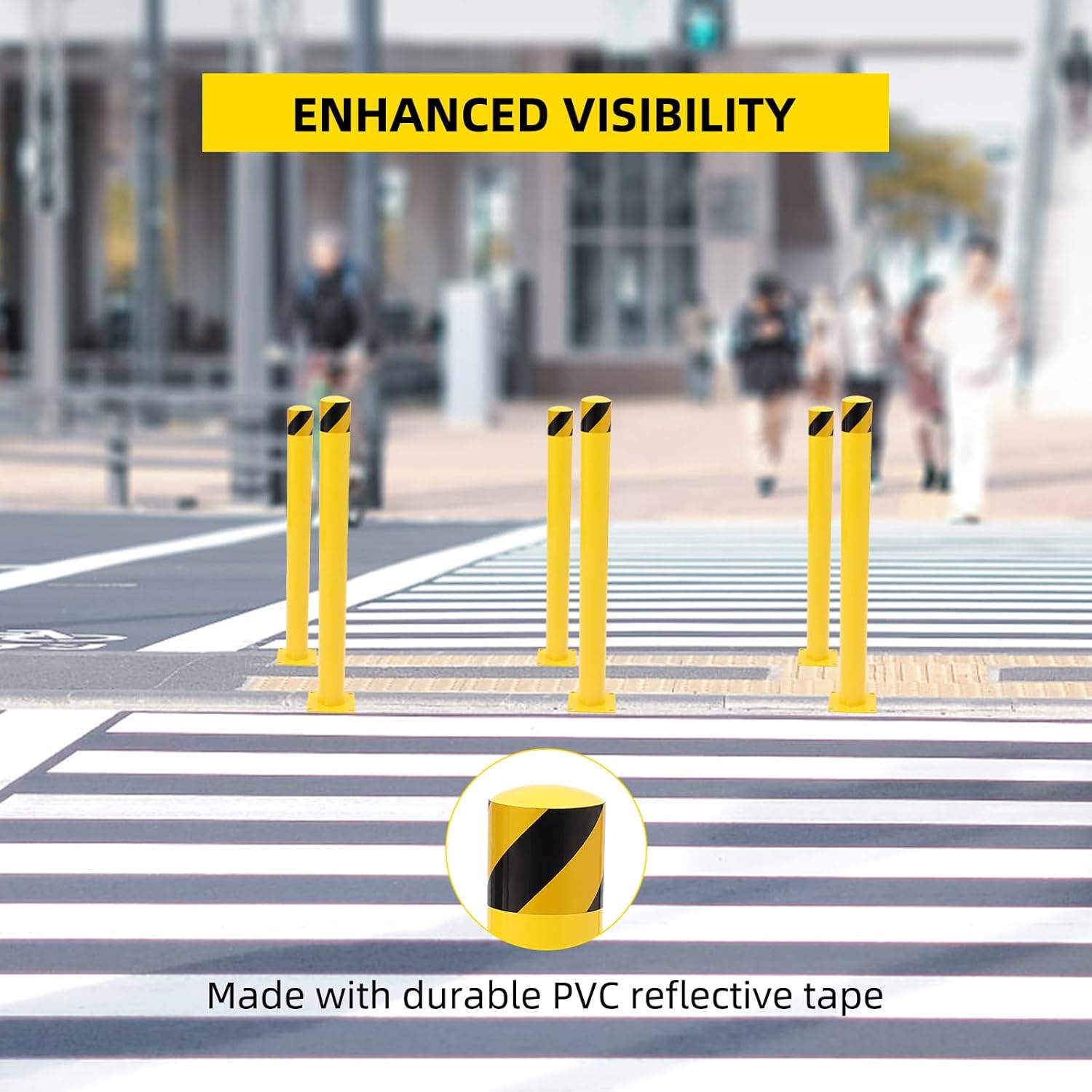 - 【High Visibility for Safety】The bright yellow powder-coated finish enhances visibility for drivers, promoting heightened awareness and caution. This protective coating also shields the bollards from oxidation, UV rays, and harsh weather conditions.