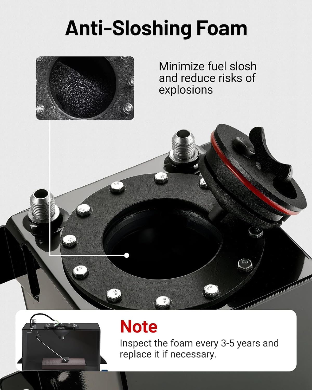 - Note: Anti-slosh foam is built in fuel cell tank to improve fuel delivery and prevent flash back explosions, please check foam regularly for deterioration