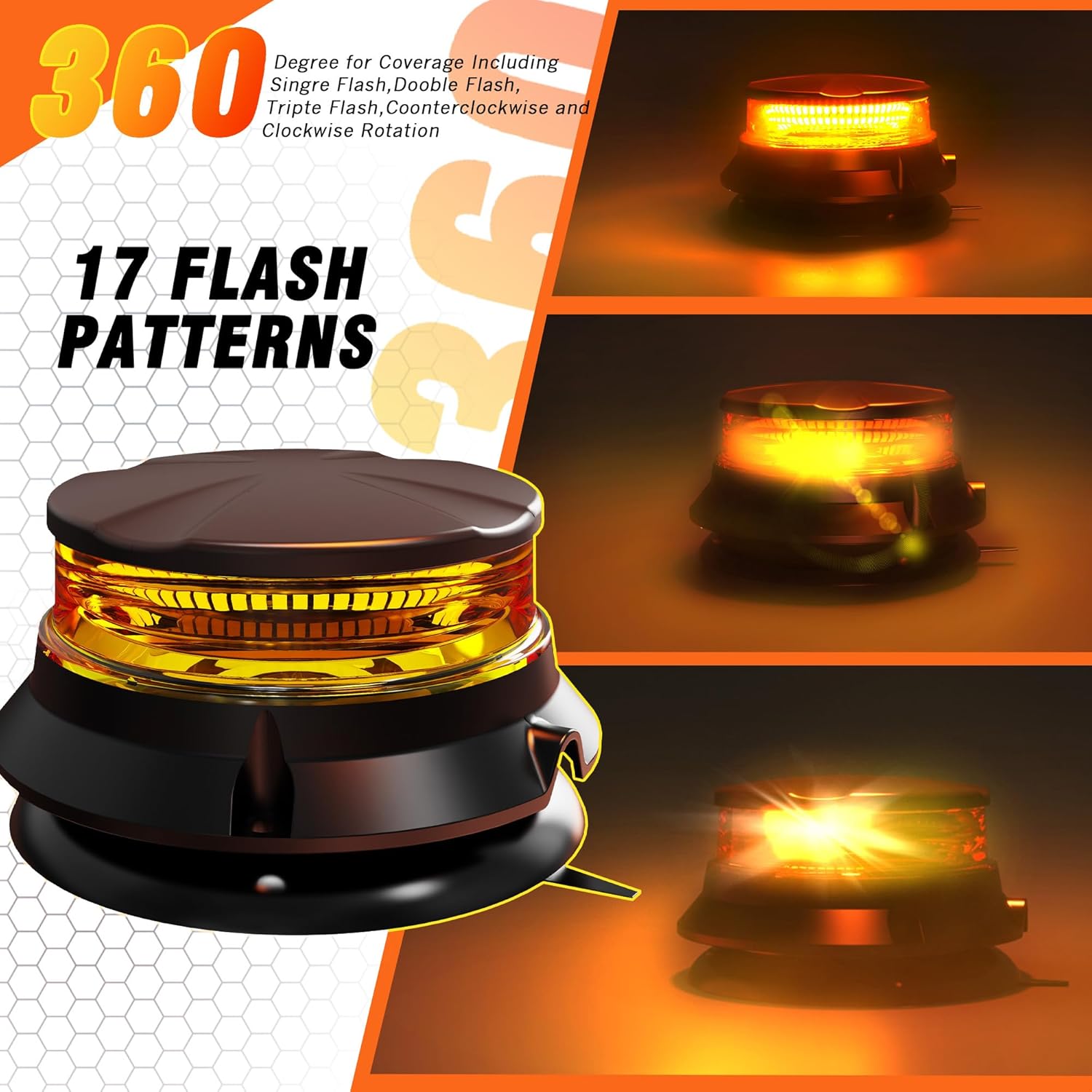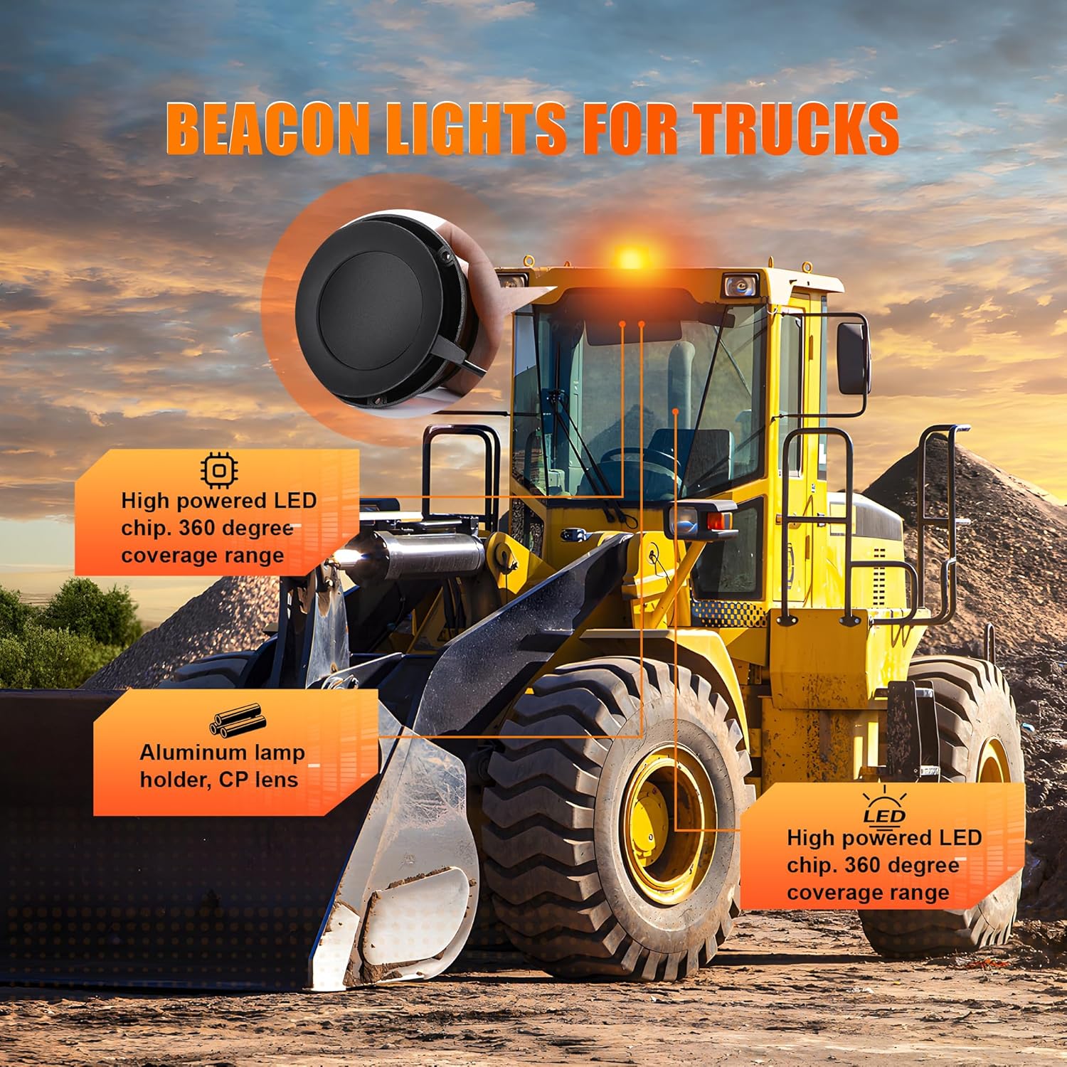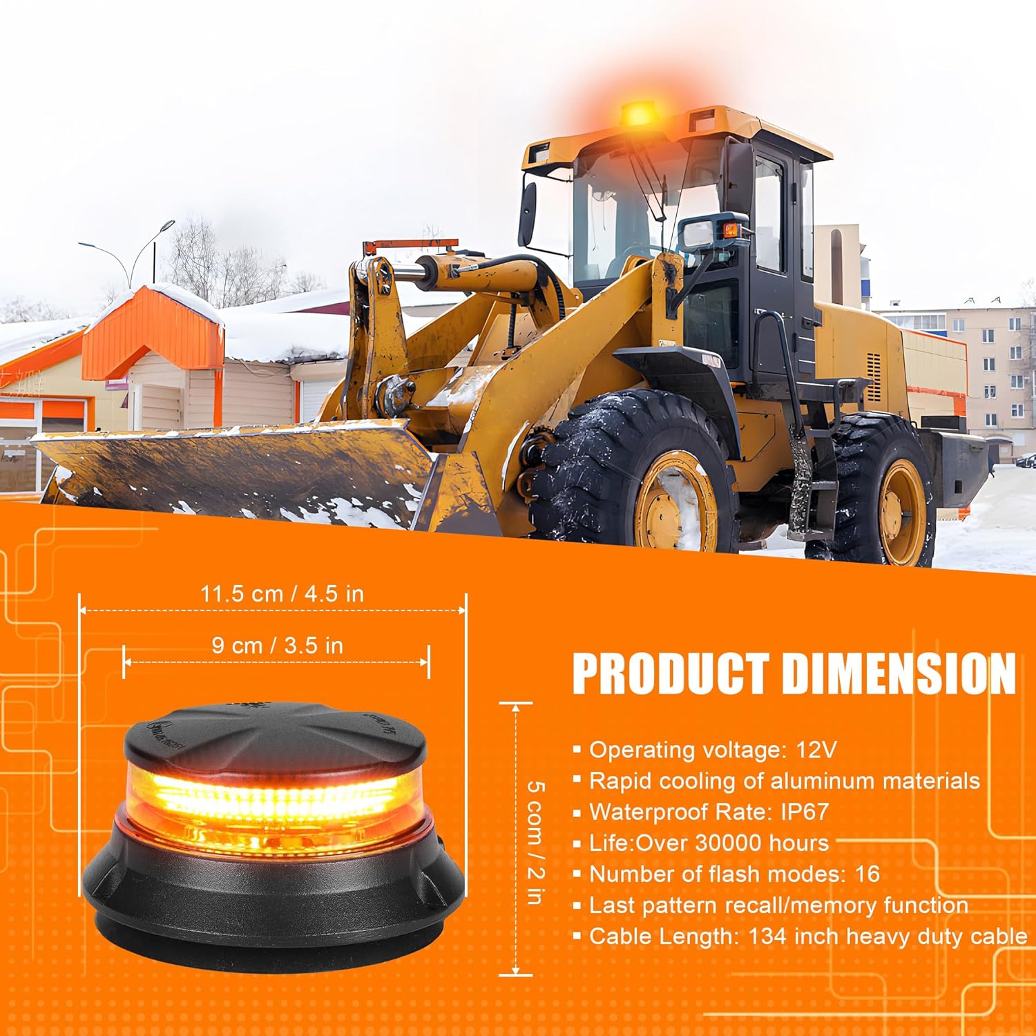 WINECO LED 앰버 스트로브 신호등, 안전 경고 비상 위험 회전 플래시 라이트, 지게차, 트랙터, 골프 카트, ATV, 우편 자동차, 12-24V 마그네틱 베이스 및 영구 마운트