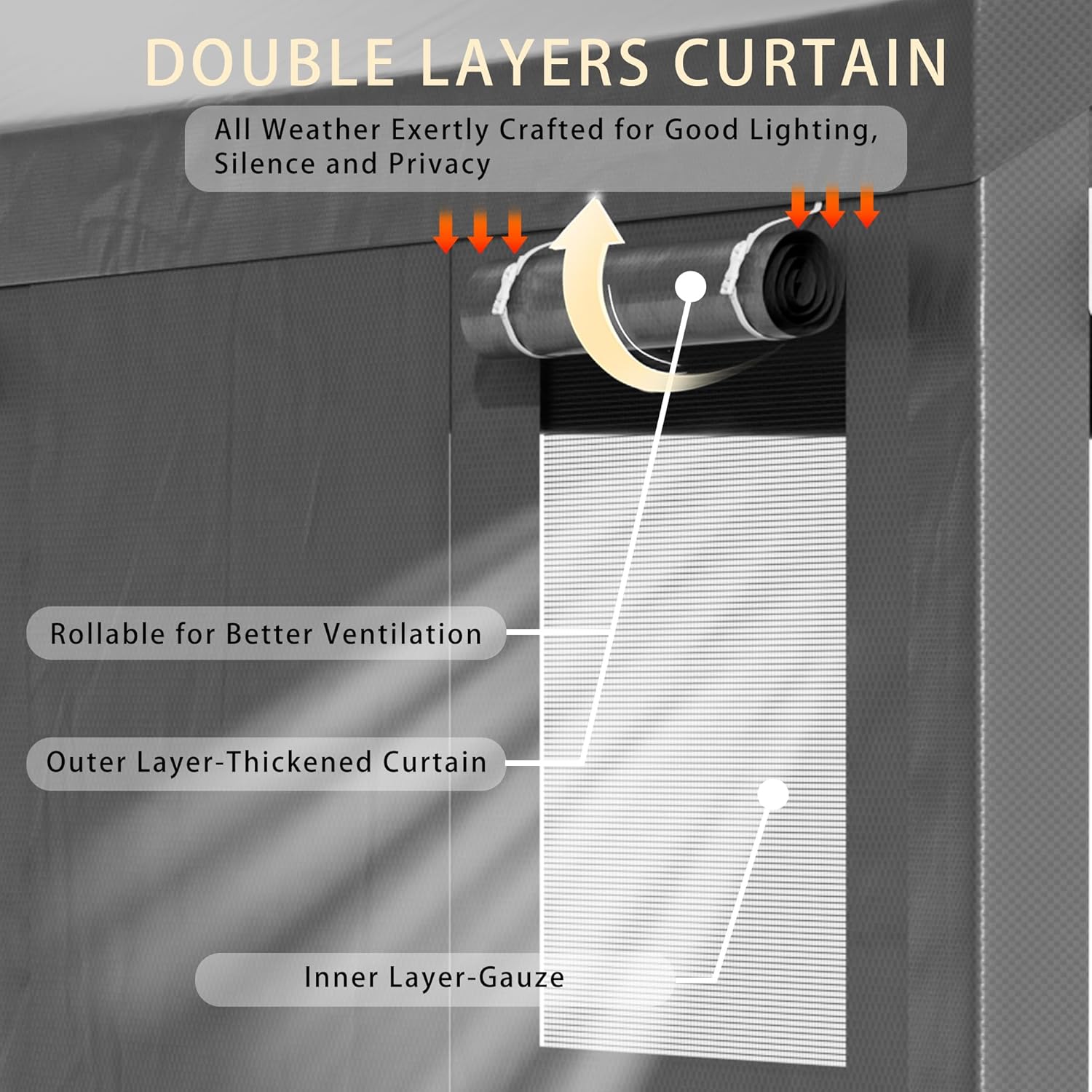- 【Removable Sidewalls Window and Doors】This carport shelter has 2 removable sidewalls with Roll-up Ventilation Windows. It can help with airflow, and prevent moisture. It also has two removable doors with zippers. You can roll the doors up or down as you wish. Or remove all the sidewalls and doors, only leave the canopy cover on for outdoor activities.