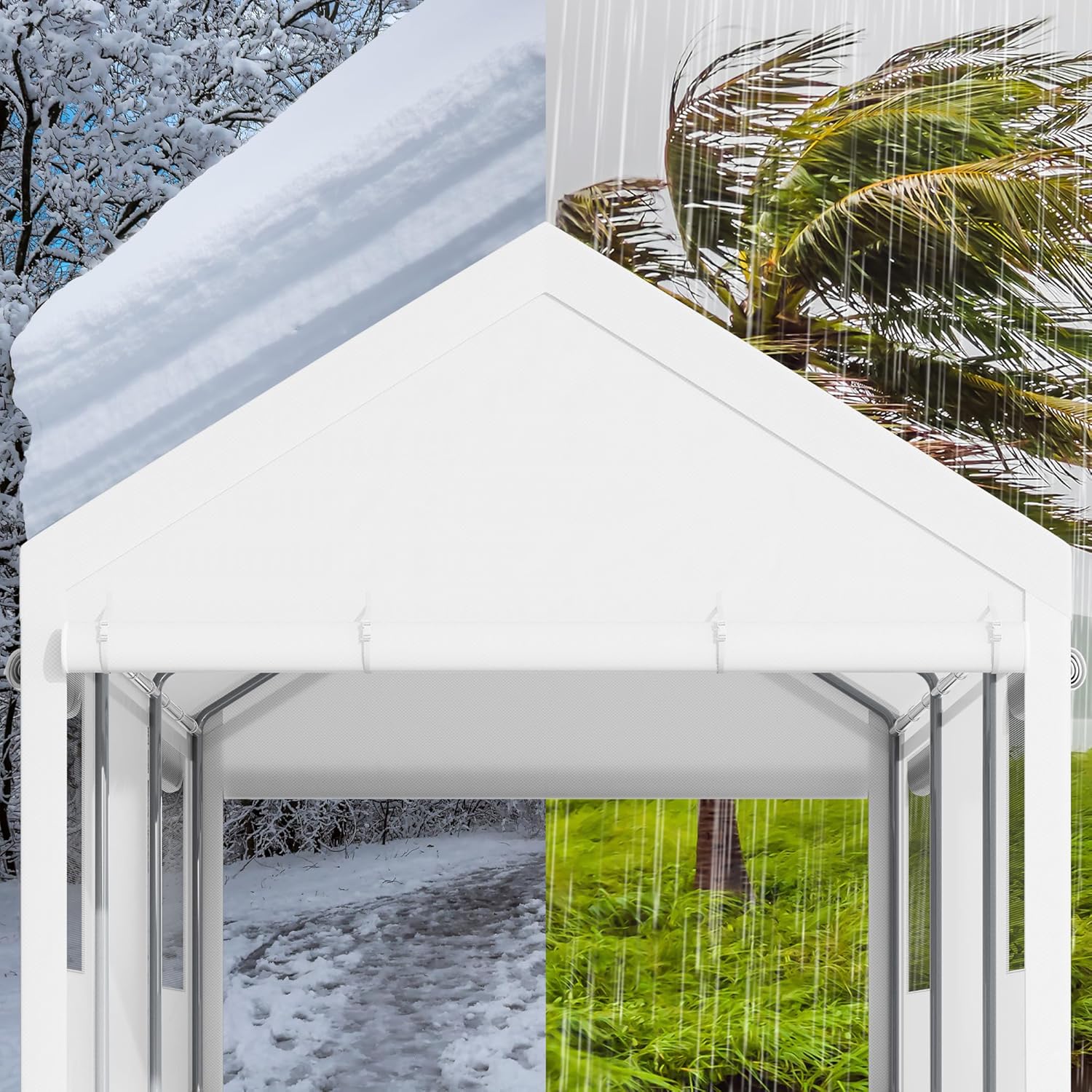 - 【Quick Easy Assembly】No additional tools are needed. It's easy to follow the included instructions for step-by-step installation. and typically 2-3 adults can quickly complete the installation. If you have any questions about installation and use, please contact us. Note: The carport canopy should not be used during heavy wind, ice, or snow conditions.