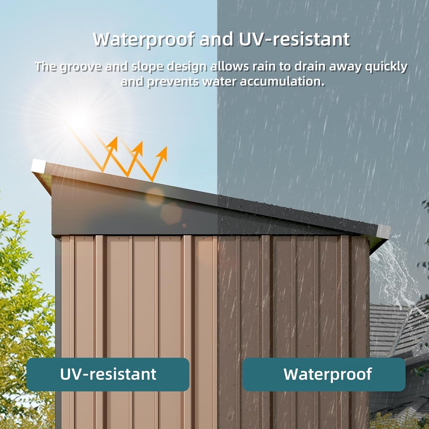 Bealife Outdoor Storage Shed Clearance, Metal Outdoor Storage Cabinet, Waterproof Tool Shed, Lockable Backyard Sheds for Garden, Patio and Lawn (Brown, 5' x 3')