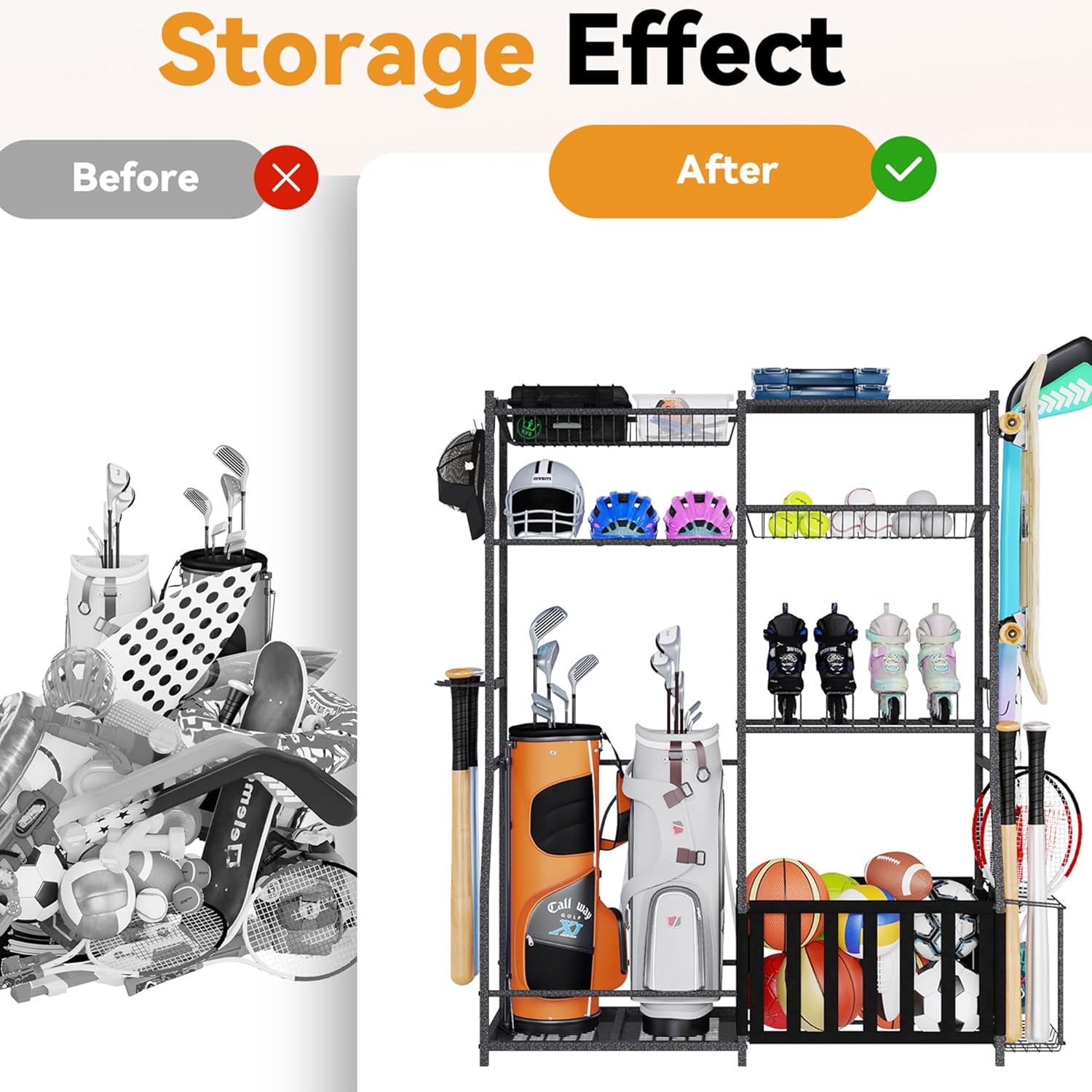 - ๐๐ฎ๐ฅ๐ญ๐ข ๐ฌ๐๐๐ง๐๐ซ๐ข๐จ ๐ฎ๐ฌ๐: This garage sports equipment organizer is suitable for your garage, warehouse, bedroom and other places. It can not only store sports equipment, toys, but also outdoor equipment, fitness equipment, clothing, etc