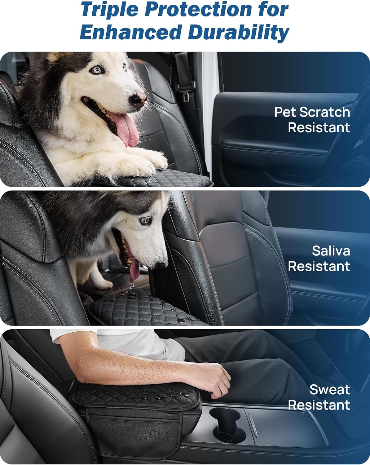 - Scratch-Resistant: The armrest cover is made of scratch-resistant leather, protecting your center console lid from pet claws, fingernails, or key scratching. Wide enough to cover the entire top and side of the console to provide full protection