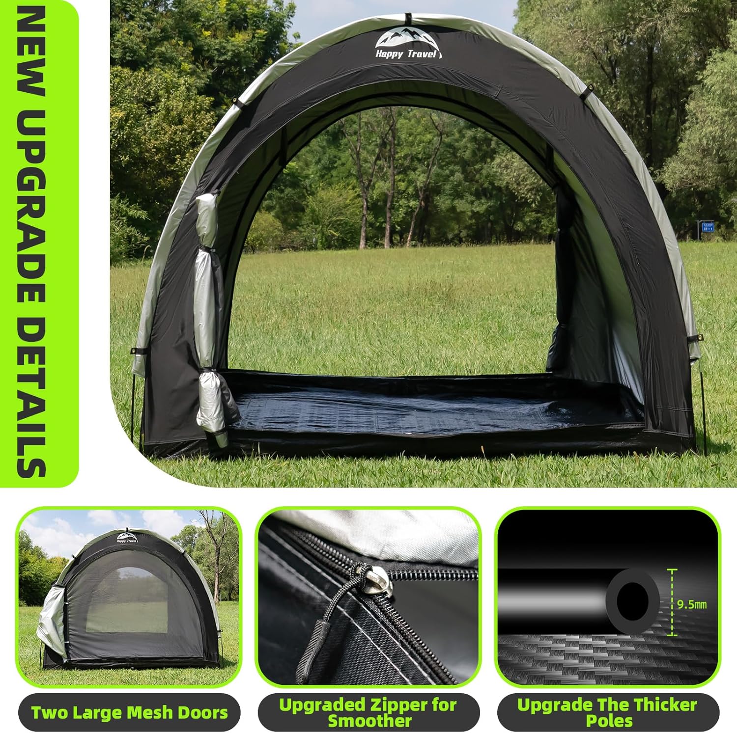 Happy Travel Bike Storage Tent Shed, Outdoor Waterproof Bicycle Covers Shelter with Window for 2/3/4/6/8 Bikes,Oversized Outside Portable Sheds for Lawn Mower,Garden Tools