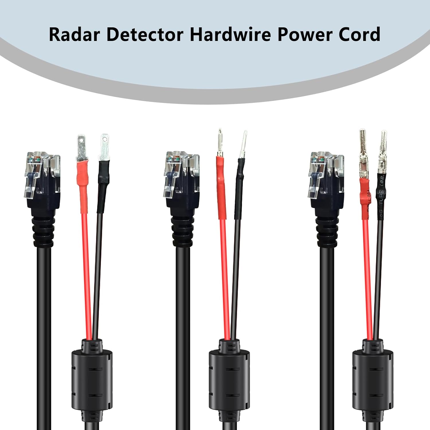 - radar detector hardwire power cord is 13.8 inches, and it is equipped with an upgraded magnetic ring that has a good suppression effect on high-frequency noise, allowing normal and useful signals to pass through well, The attached zip ties can keep the cable clean.