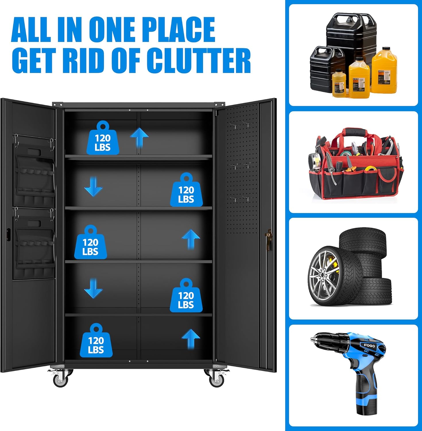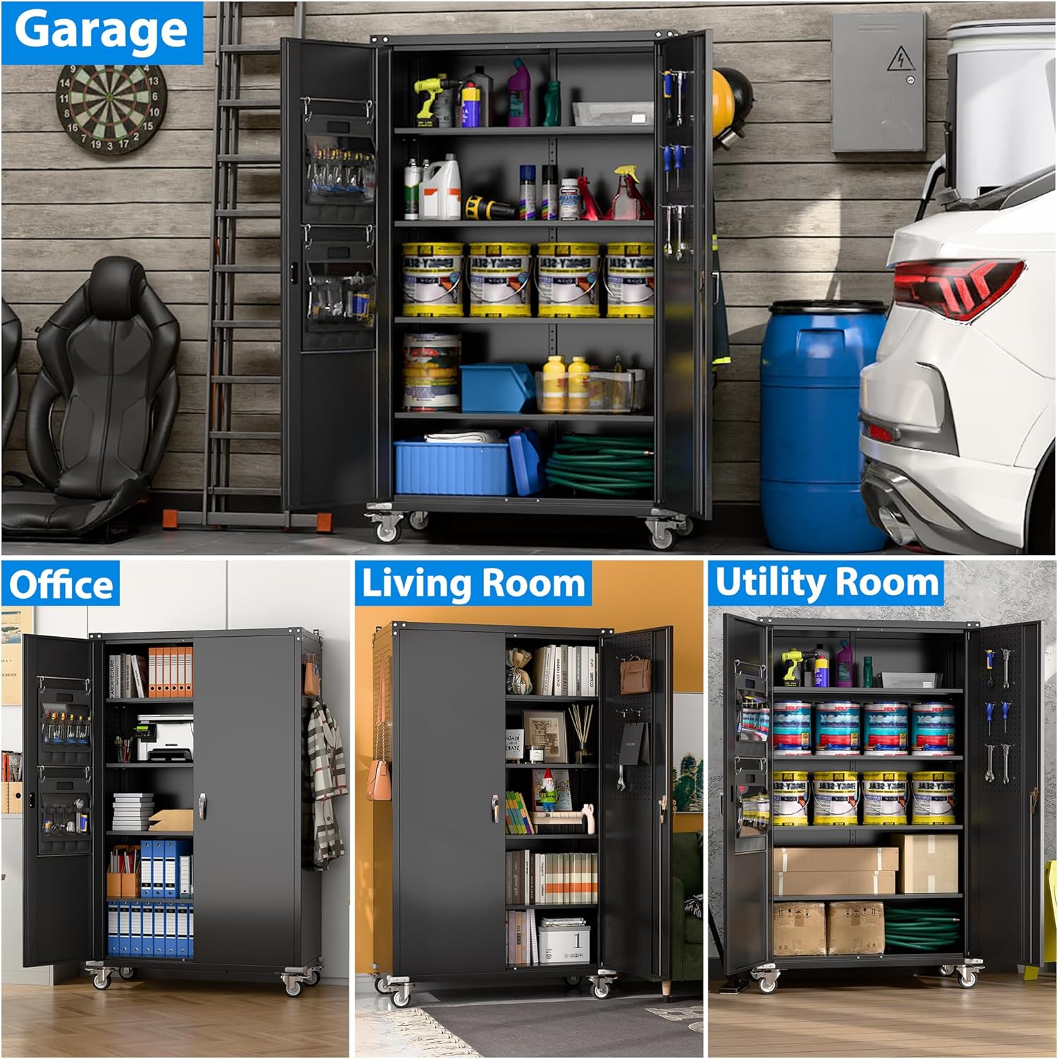 - 【2025 Comprehensive Upgrade】 Crafted with enhanced materials and design for superior storage capacity and durability, making it the perfect addition to your garage, workshop, or home storage needs.Spacious & Deep storage solution,boasting a generous 43'' width by 22'' depth, this cabinet effortlessly accommodates bulkier tools, gardening equipment, or seasonal decor, transforming clutter into organized space.