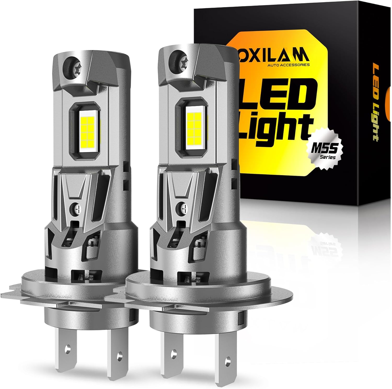 - 800% Brighter Output: With 16 top automotive-grade LED chips, oxilam h7 led bulb produces 38,000 lumens (LM) and 100W per pair, offering 800% brighter light compared to standard halogen bulbs. This significantly improves visibility of road signs, obstacles, and the overall driving environment