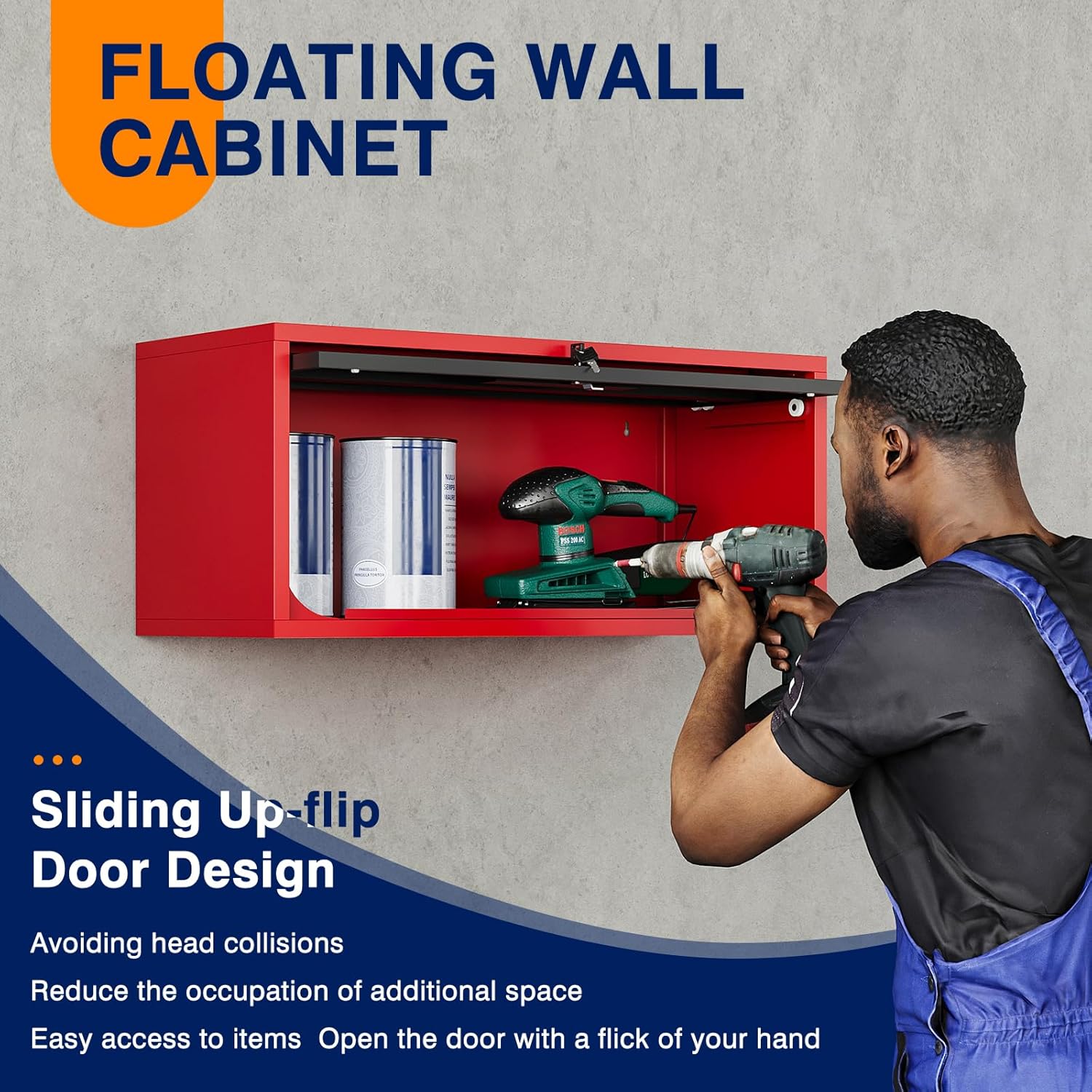 Yizosh Metal Wall Cabinet with Doors, Wall Mounted Storage Cabinet, Floating Tool Cabinet for Kitchen, Basement, Warehouse (Red Black, 13.7" H)