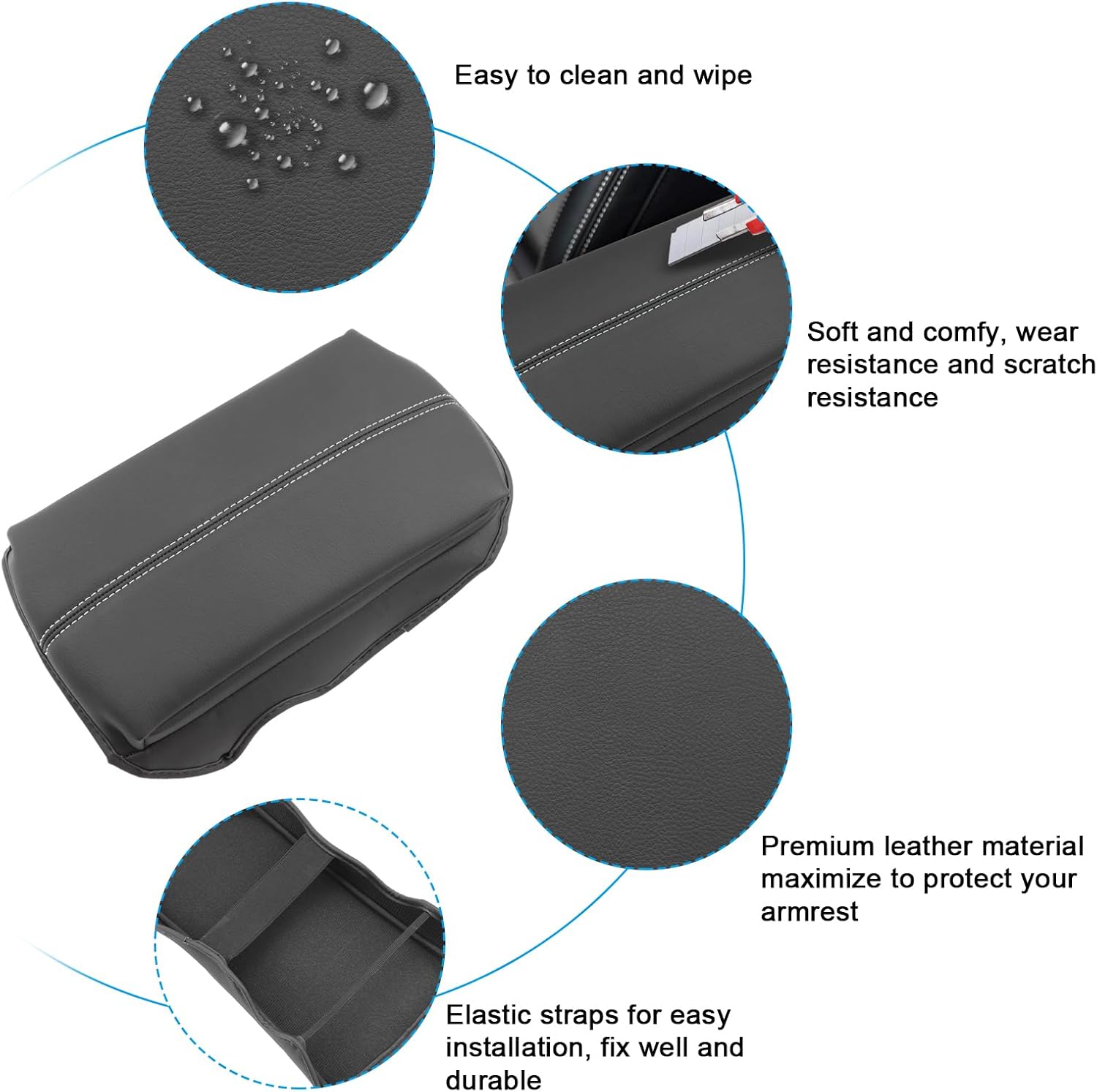 - Full Protection for the Armrest: The grey stitched cover protects the original 2024 mustang armrest from aging, pet nails scratches, dirt, and sticky fingerprints, preserving the armrest's condition.