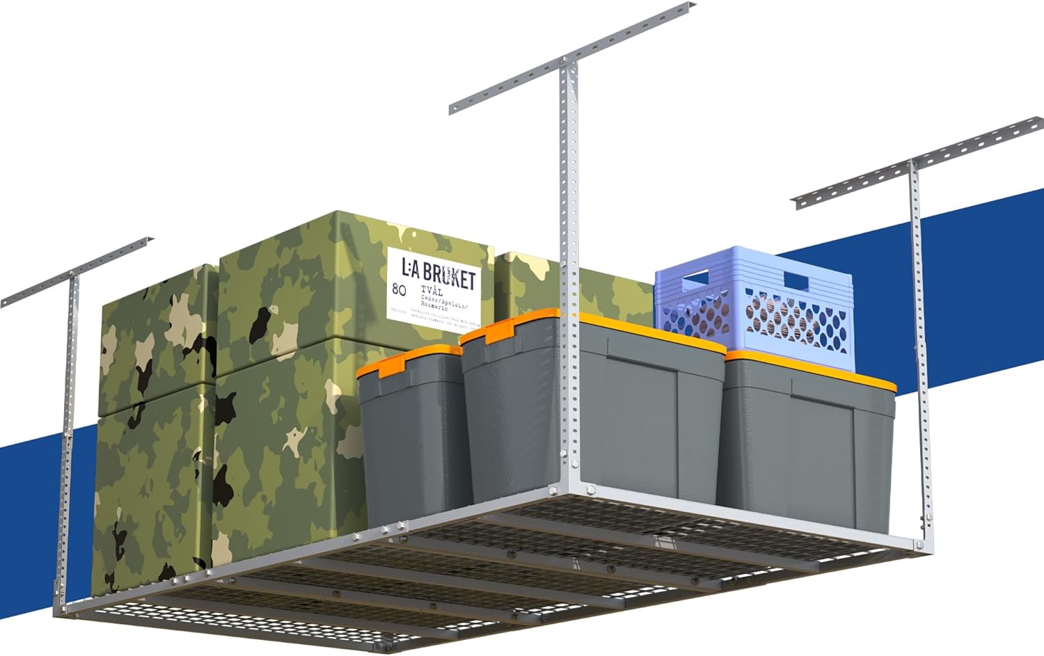- MATERIALS & CRAFTSMANSHIP: Thickened carbon steel frame, dense grid with a spacing of 2.1 inches, thickened 8mm screws, rigorous full welding process, and precise laser cutting. The waterproof and rust-proof powder coating enables the garage rack to be used for a long time.