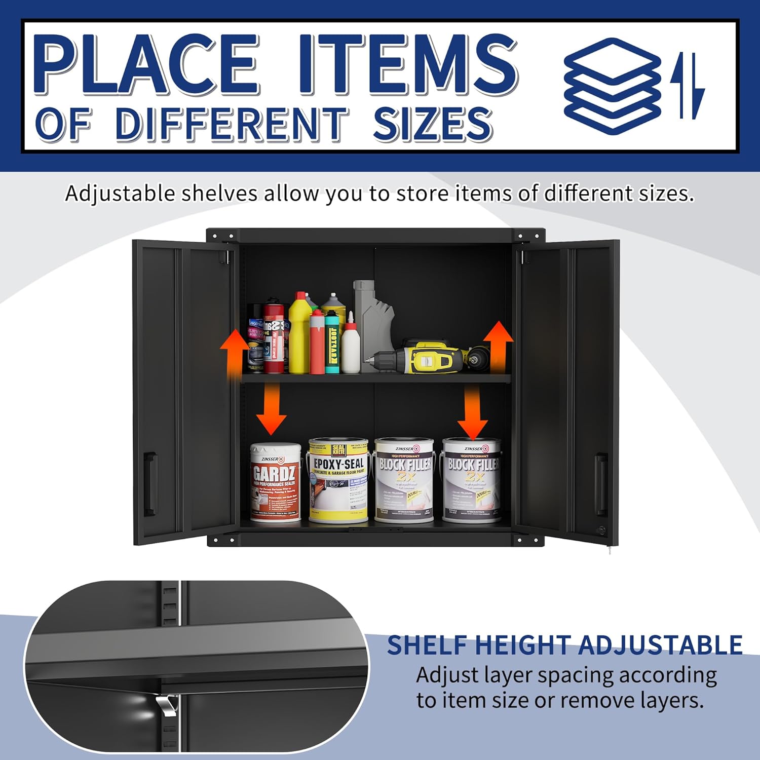 Garage Wall Cabinet,Metal Wall Cabinet with Doors and Adjustable Shelves,Steel Utility Wall Mounted Tool Cabinets for Home,Office,Kitchen,Warehouse